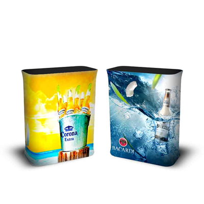 - Illuminated Tension Fabric Counters:These are great for adding a bit of elegance to your booth. The LED lighting on these counters highlights your custom graphics, which are printed on tension fabric for a smooth, professional finish. It’s easy to set up, easy to move, and looks fantastic.
