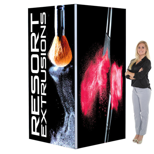 Our BigSky-32D Double-Sided Extrusion is a game-changer. With a profile width of 32mm (1.26in.), it's custom-made to create four-sided counters, podiums, and towers in various sizes. This extrusion offers ample space for custom fabric graphics and allows you to add-on an acrylic countertop for added functionality.