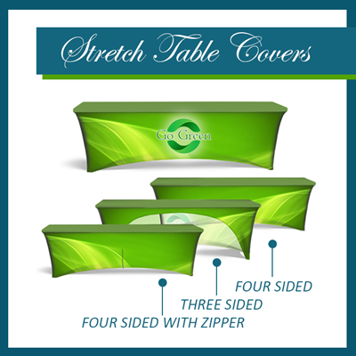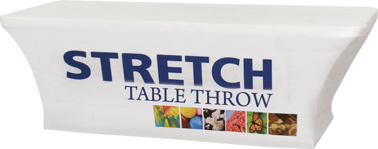 If you have a custom-sized table, 123Displays can create a stretch table throw tailored to your specific dimensions.
