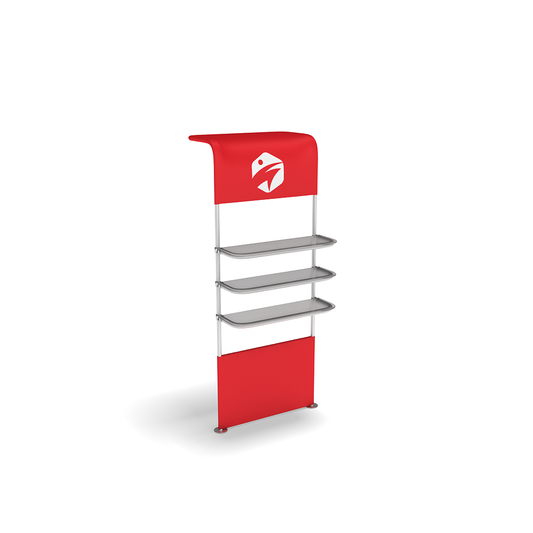 3ft x 8ft WaveLine® Waterfall XL Shelving Display w/ 2 Half Graphic Print Single-Sided