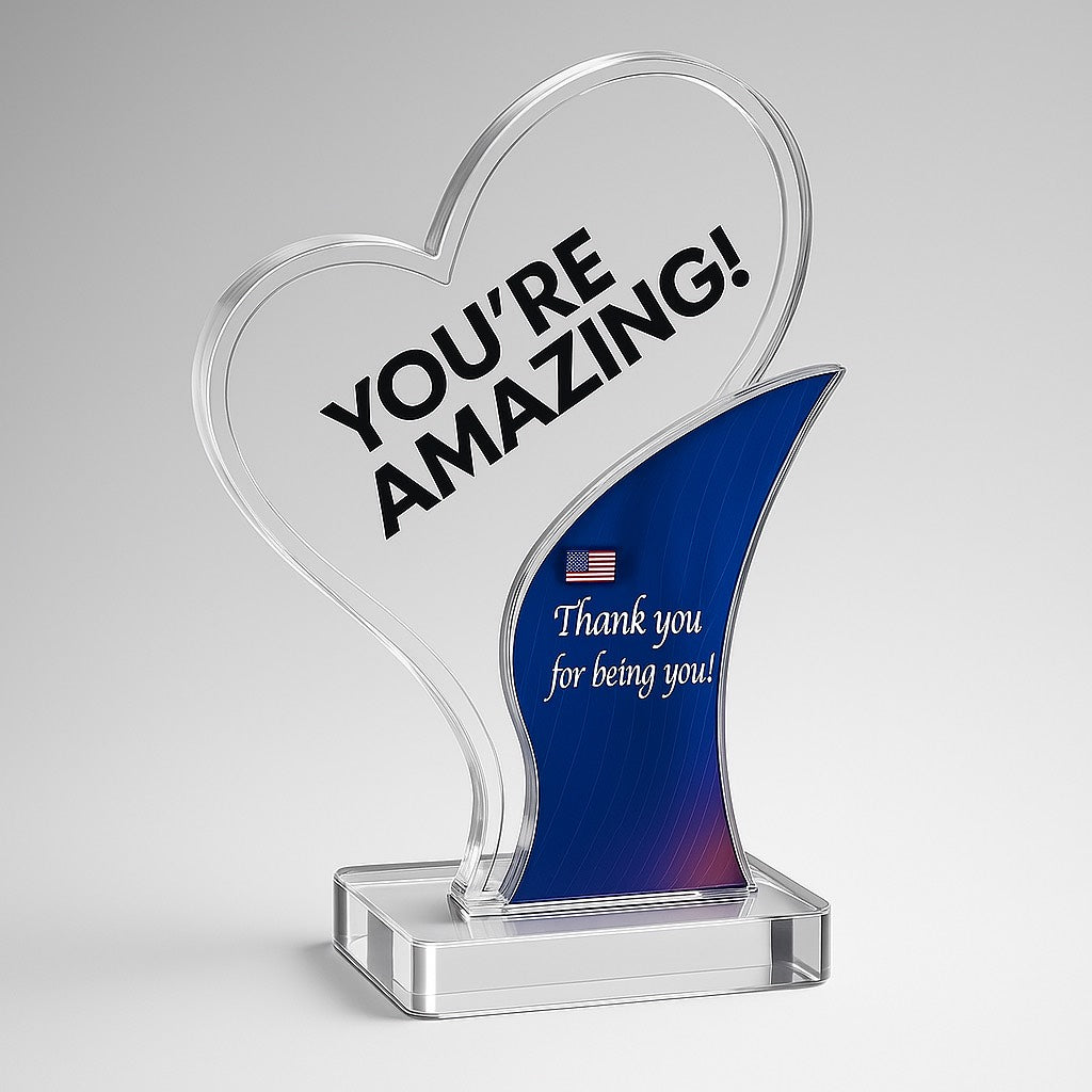 Top Section: Offered in 1/4" or 1/2" clear acrylic, featuring vibrant full-color UV printing with white ink for enhanced visibility and crisp graphics.