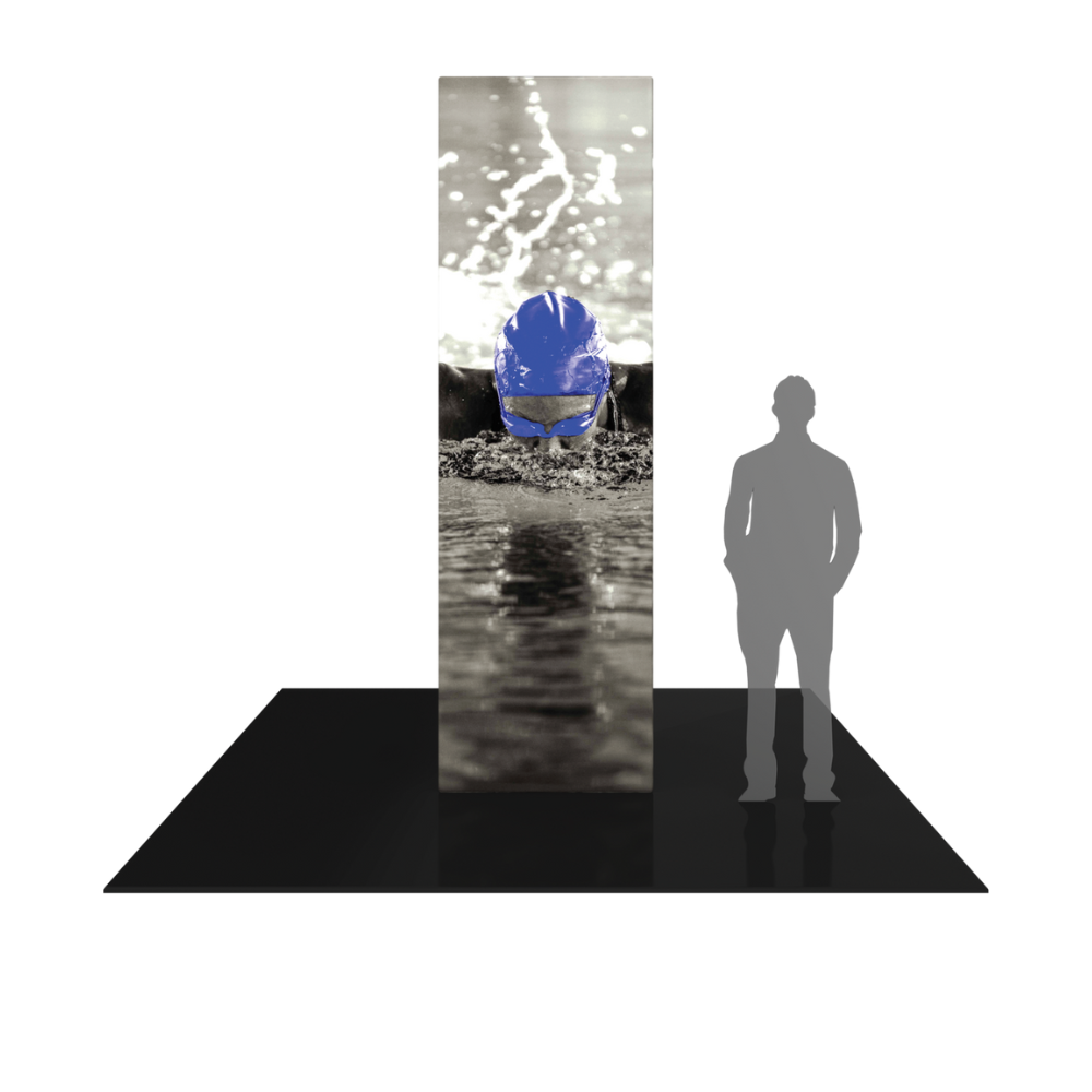 The Formulate 10ft Four-Sided Fabric Tower 02 can transform any environment through form, fabric, and lighting. The rectangular-shaped tower is 10ft tall and 3ft square at the top and bottom. Formulate Four-Sided Fabric Tower 02 combines the latest developments in fabric printed technology with aluminum tube frames to add dimension, decor, and sculpture to any event, stage set, tradeshow booth, or interior space. Simply mix and match with other Formulate towers to add architecture and drama to any event or interior space. Formulate Tower 02 accommodates internal LED lighting (sold separately) to create a glowing effect. Four-Sided Tower 02 packs easily into a wheeled OCL case for easy storage and transport.