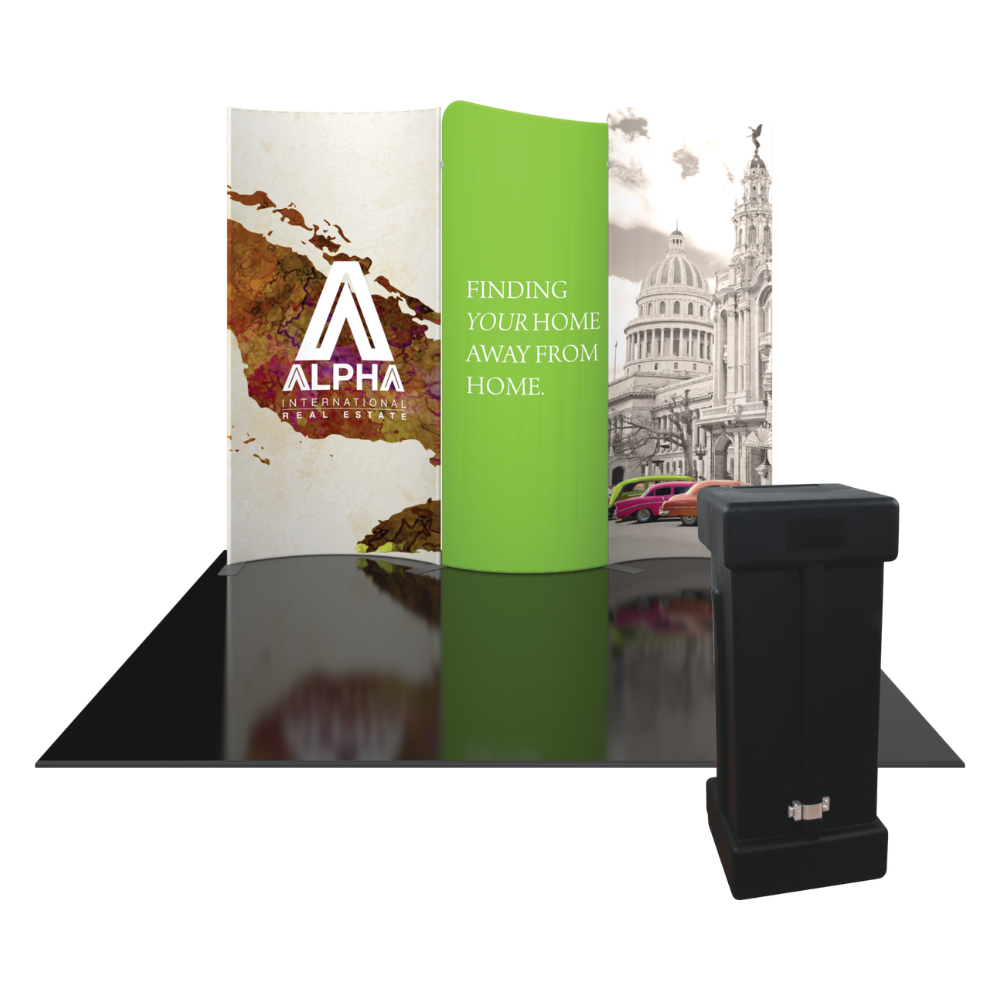 Modulate 10ft Kit 02 consists of three curved, magnetic fabric banners. Create an impact with a stylish 10ft wide inline display and/or repurpose it as individual banners and maximize your value!