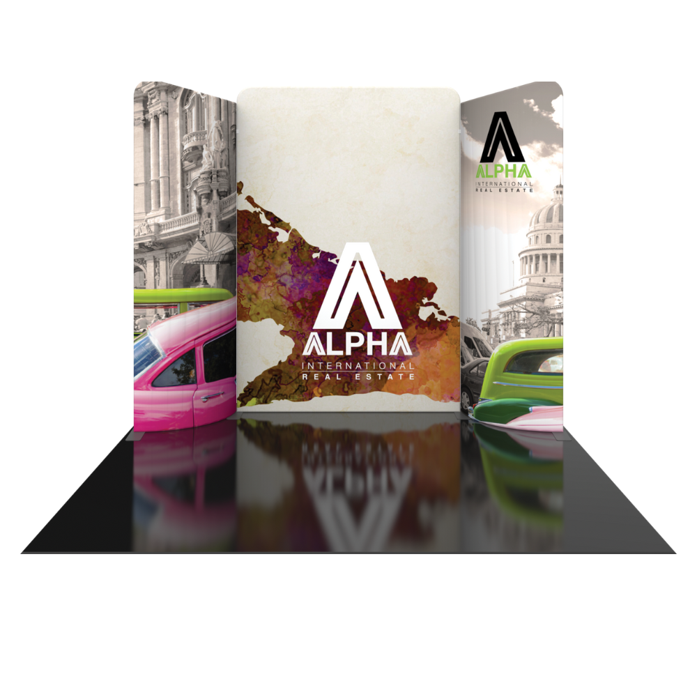 Modulate 10ft Kit 10 consists of two curved, magnetic fabric banners and one straight, magnetic fabric banner. Create an impact with a stylish 10ft wide inline display and/or repurpose it as individual banners and maximize your value!