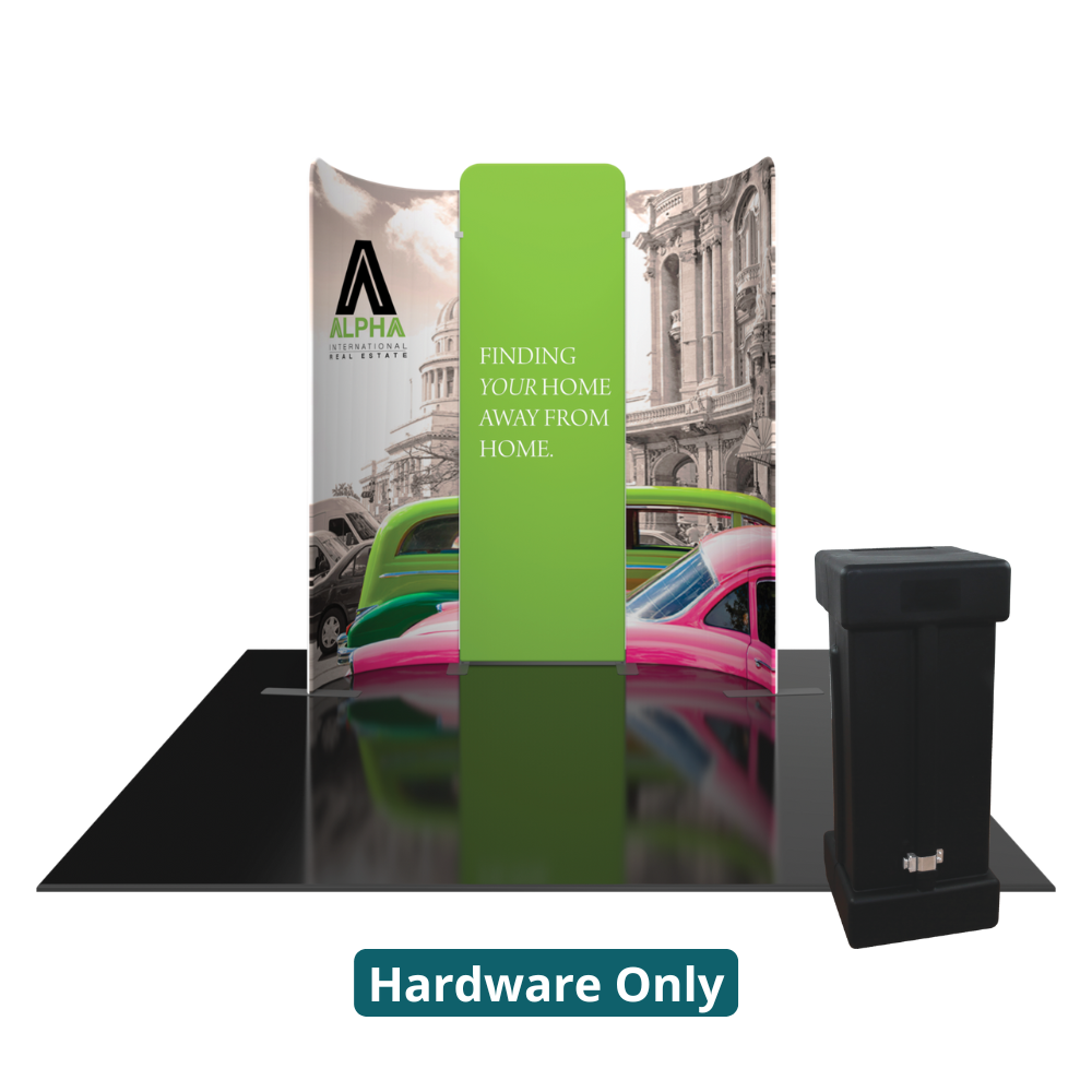 Modulate 10ft Kit 09 consists of two curved, magnetic fabric banners and one straight fabric banner. Create an impact with a stylish 10ft wide inline display and/or repurpose as individual banners and maximize your value!