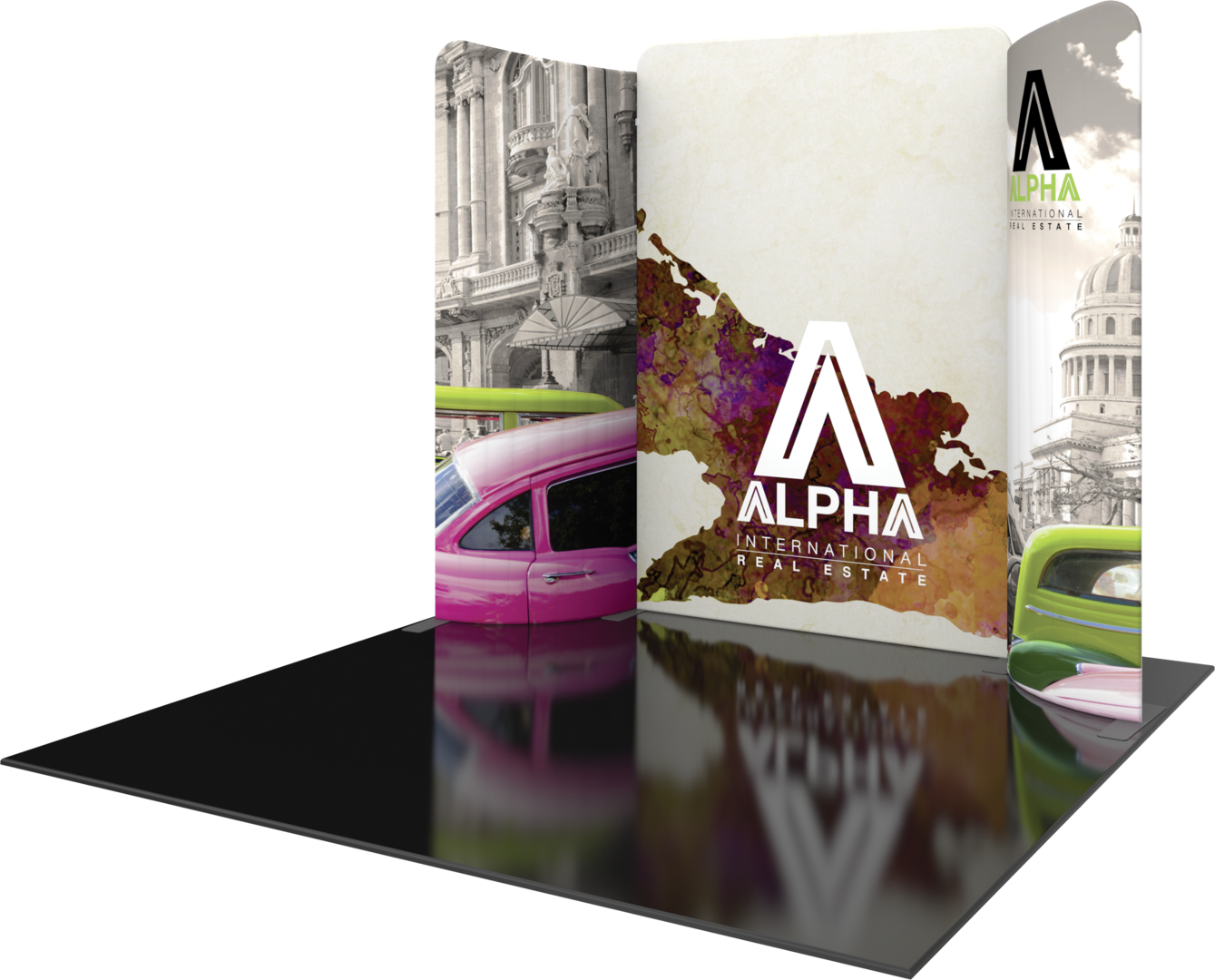 Modulate 10ft Kit 10 consists of two curved, magnetic fabric banners and one straight, magnetic fabric banner. Create an impact with a stylish 10ft wide inline display and/or repurpose it as individual banners and maximize your value!