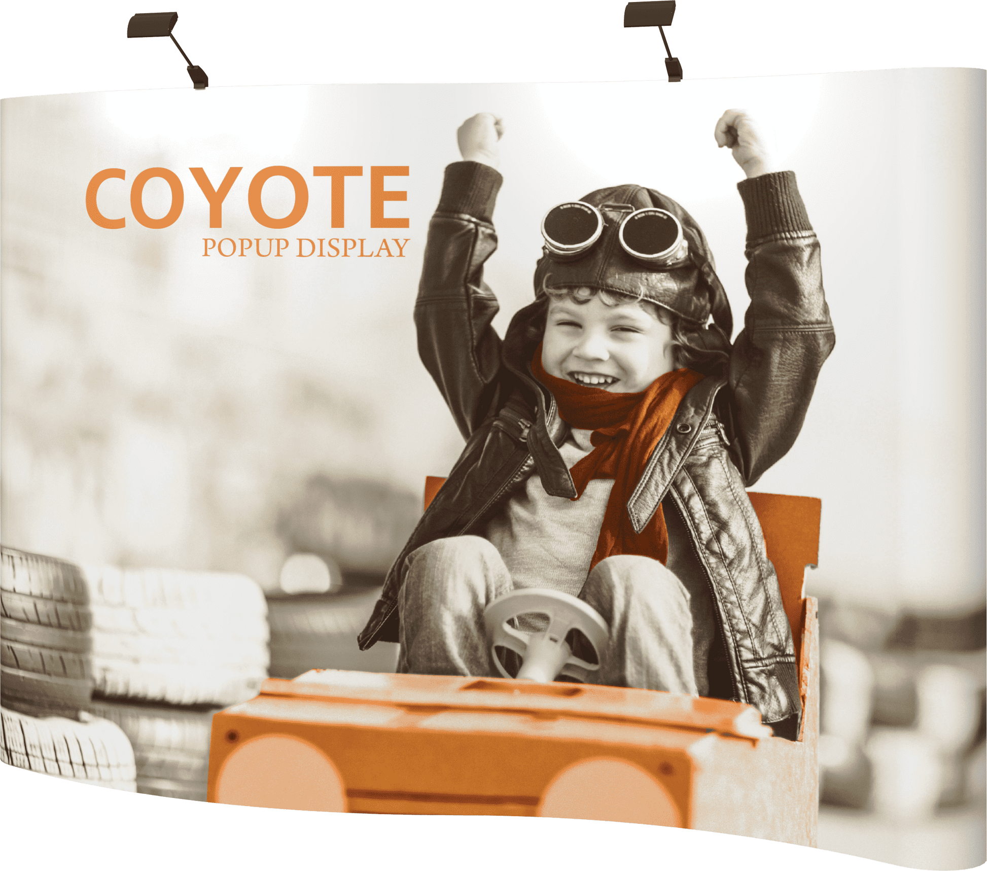 Coyote displays are offered in a variety of sizes and configurations, ranging from 4ft tabletop units to 10ft full height displays available in curved or straight systems, and larger serpentine curved, horseshoe, and gullwing shaped systems. Frames are finished with your choice of either captivating graphic mural panels or versatile hook and loop-friendly fabric panels.