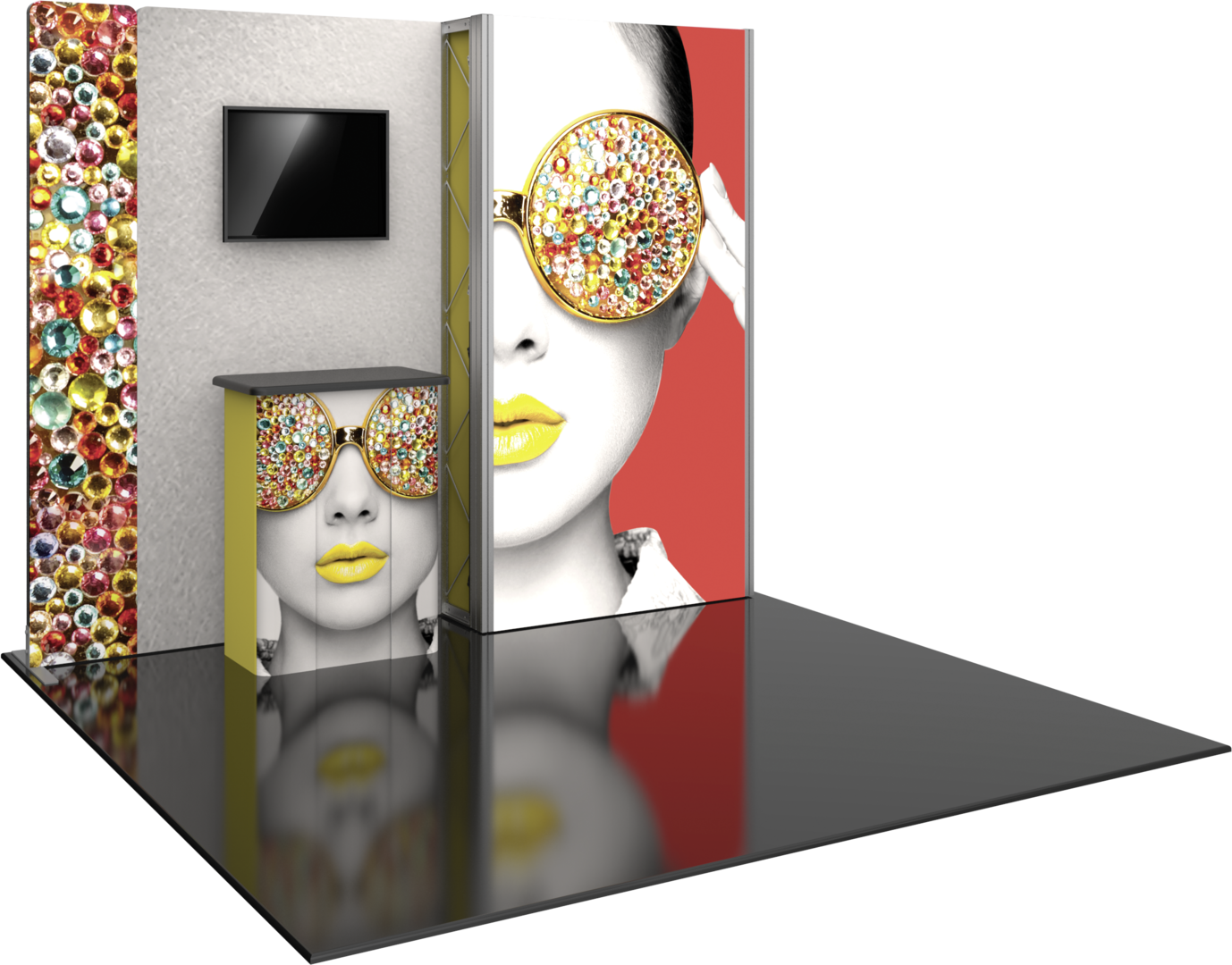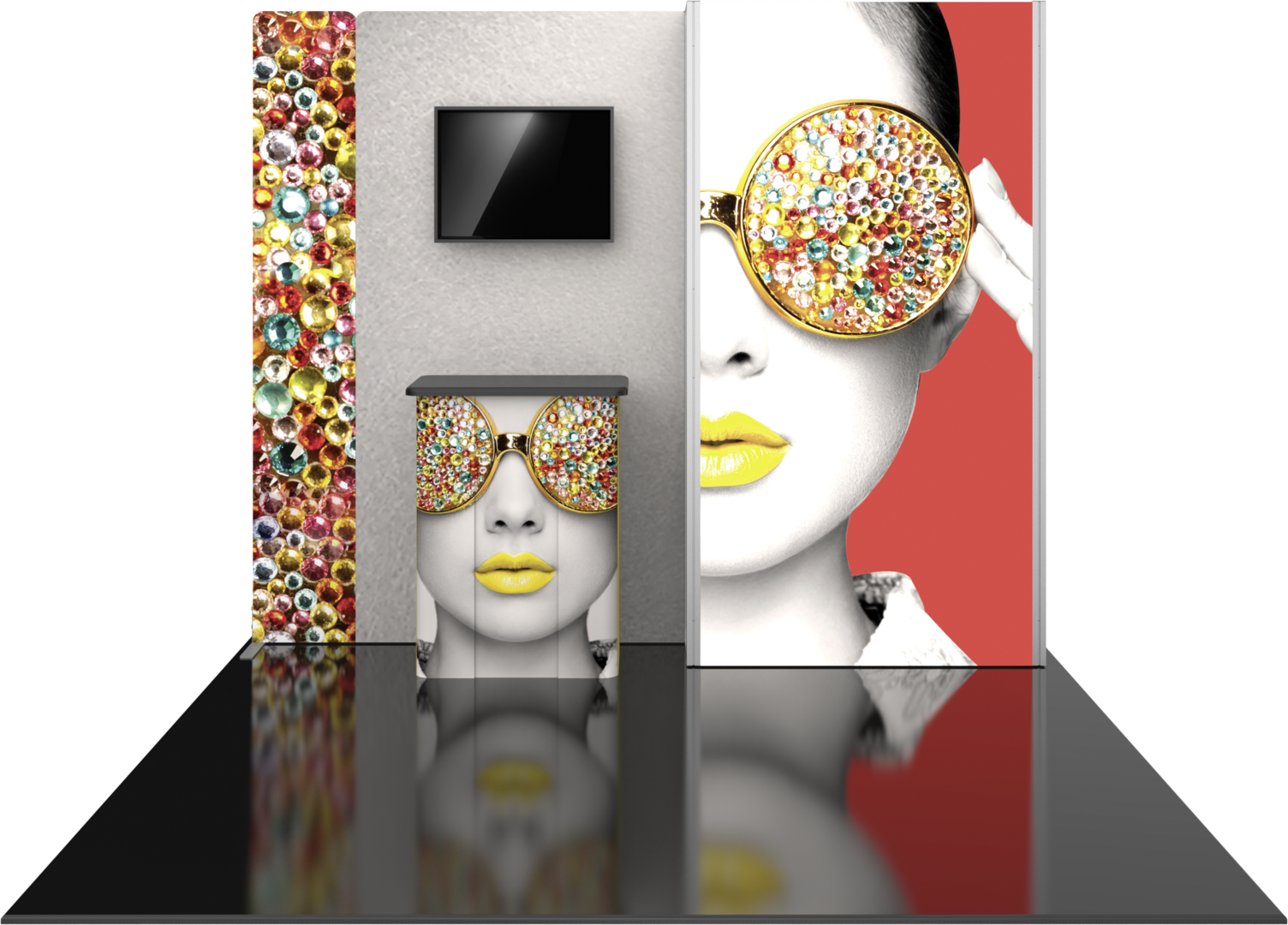 Vector Frame™ Master 10ft x 10ft inline Kit 16 is a professionally-designed exhibit that will captivate your audience. The sleek Kit 16 features push-fit fabric graphics and three easy-to-assemble extrusion frames. With a monitor mount, fabric graphic counter, and ILLUMINATED panel, it has never been easier to stand out on the show floor! Make an impression on any audience with Vector Frame 10ft x 10ft Kit 16.