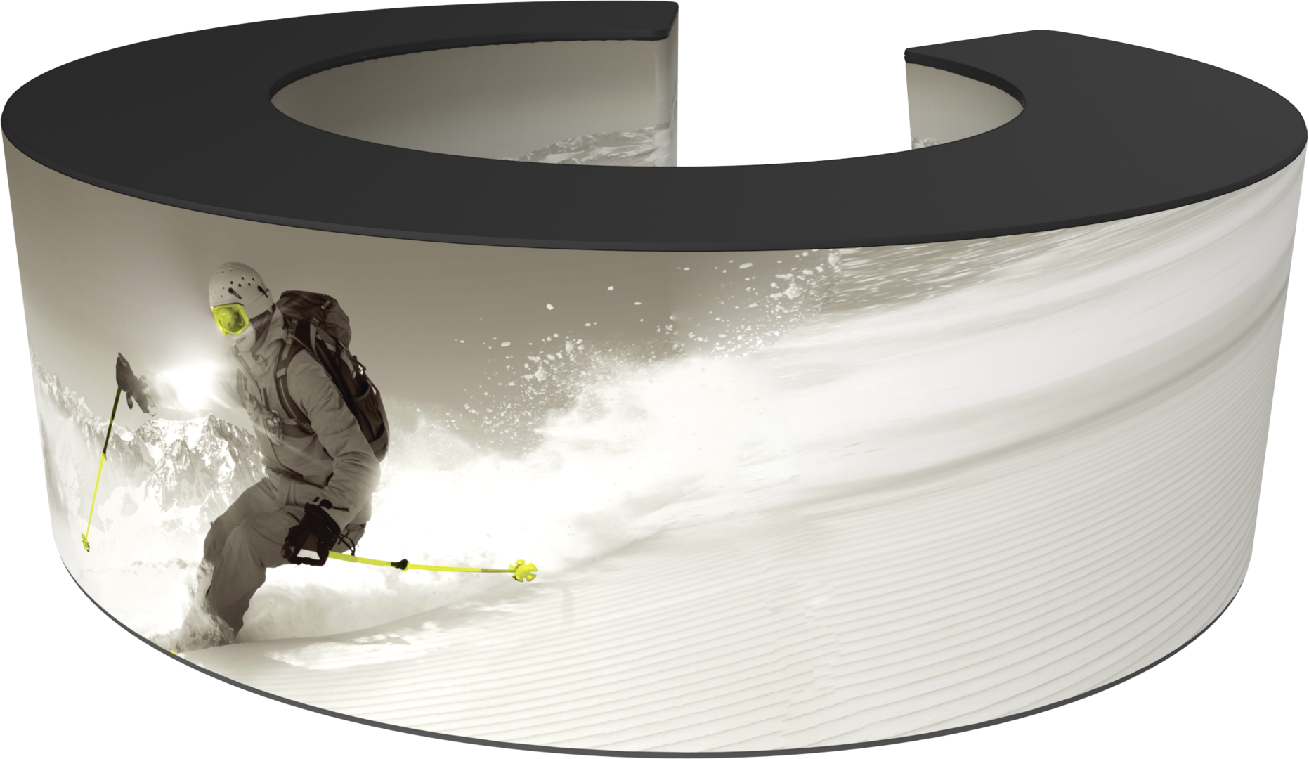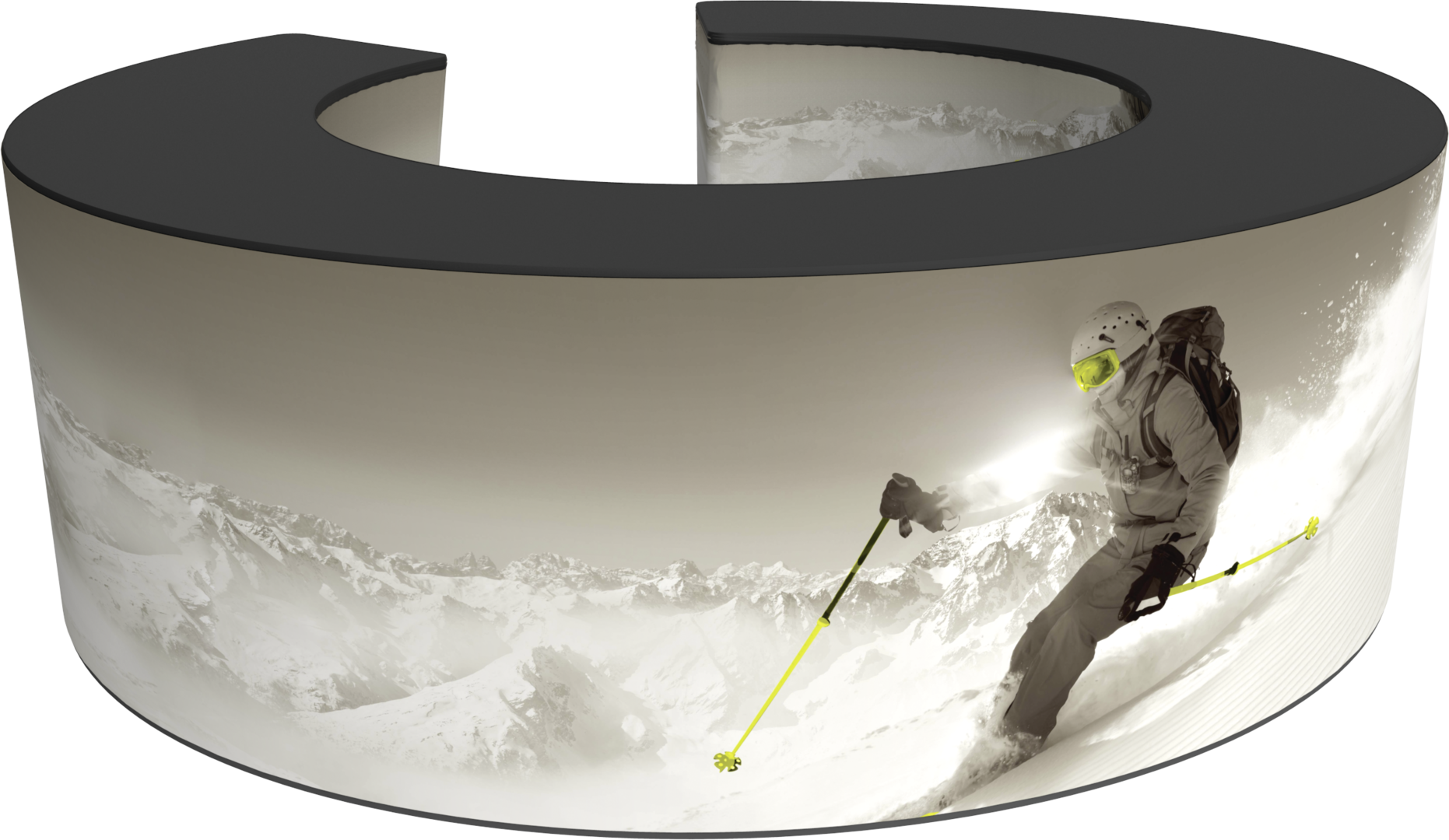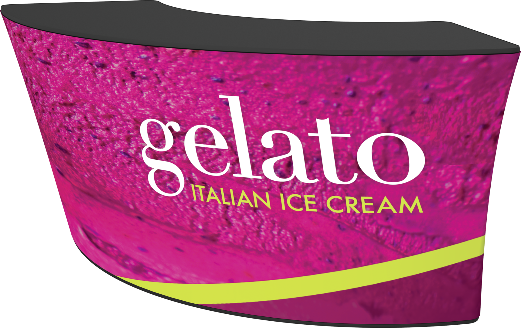 Formulate Bar counter 07 adds a modern flare to any trade show exhibit, event, or POP display. The curved counter pairs push-fit fabric graphics with a durable countertop and base, and provides the ideal configuration to create a display or reception counter.