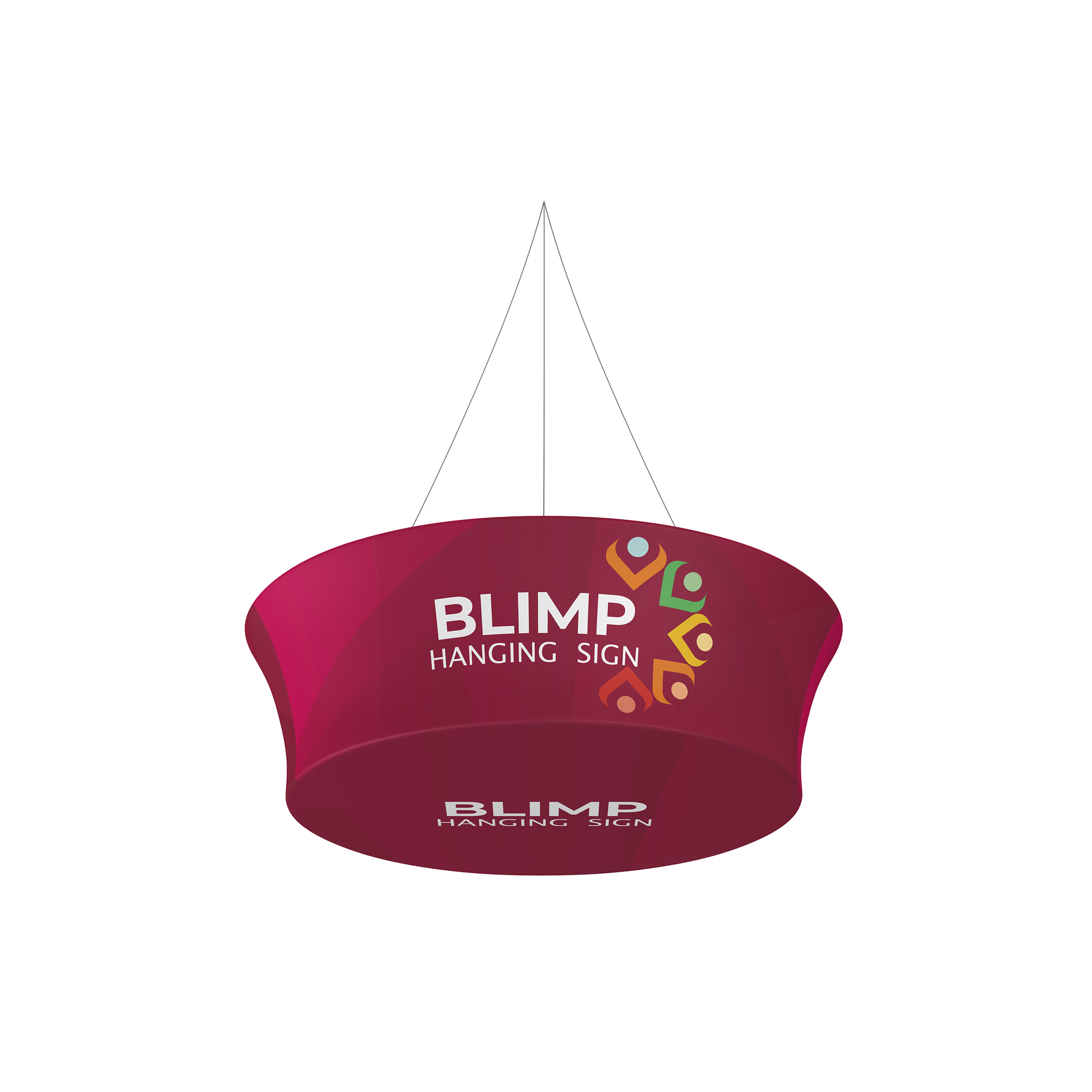 The WaveLine ® Blimp hanging banner frame system is made from a lightweight extruded aluminum frame wrapped in a vibrant dye-sublimation graphic print and comes in a variety of shapes and sizes to compliment your overall booth design and attract attention from across the exhibition hall. When paired with quick-release cables, the WaveLine ® Blimp becomes a billboard visible in any direction. Available in open or closed face design and 9 unique shapes. Custom shapes available upon request. Hang and suspend overhead from ceilings or truss systems.