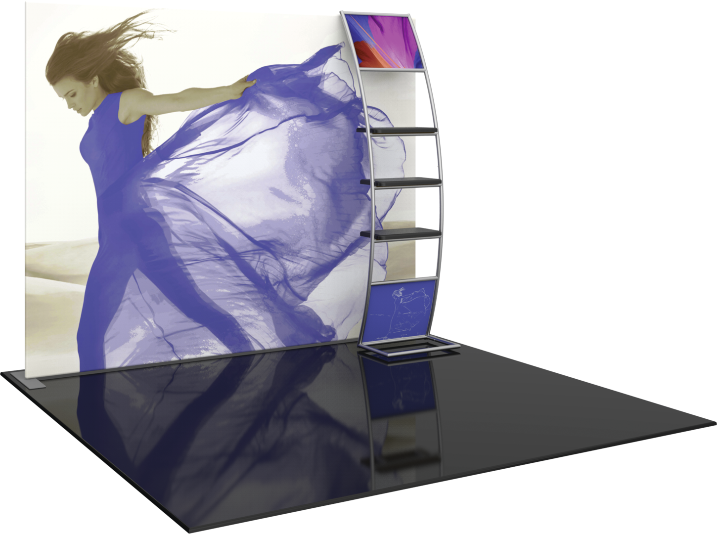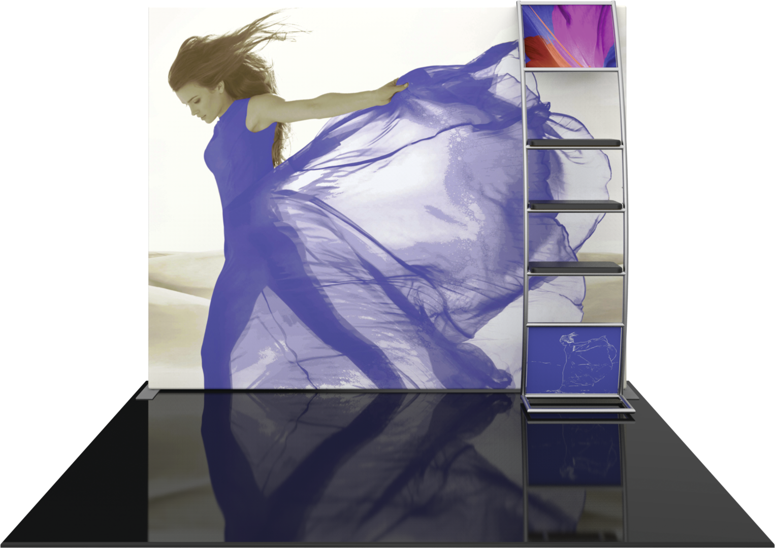 The Formulate S6 Straight 10ft Fabric Display is the ideal display solution for making an impact at your next event or trade show. The S6 Straight Formulate display comes with a tubular backwall frame and an accent ladder with three shelves, perfect to display small products. Stretch fabric graphics are hand-sewn, durable, and dry-cleanable.