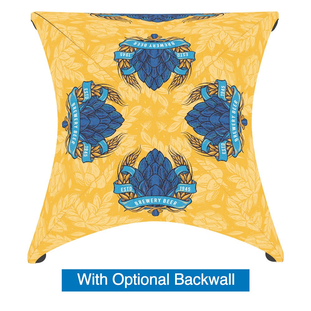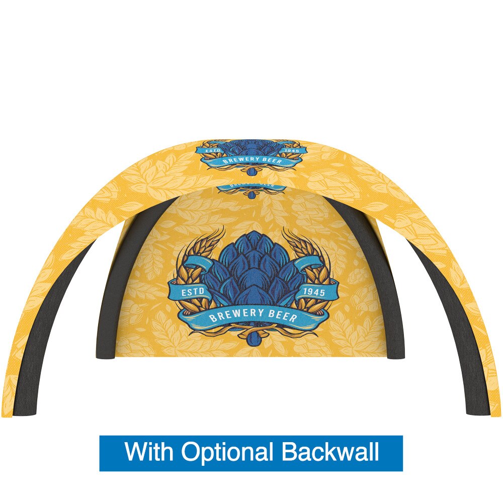 Enhance your tent with optional backwalls and awnings for added functionality and style. Choose from full backwalls, backwalls with windows, or ones with zippers for convenient access. All backwalls are available with single or double-sided graphics to suit your branding needs. The optional awning, which also includes an inflatable bladder frame and support rods, ensures stability and can even connect two tents side by side with a connecting awning.