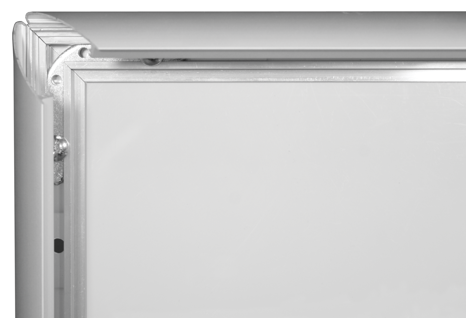 Trappa Poster Frames feature snap-edges, which easily open from the front to allow for quick and easy, graphic changes with no tools required. This sleek framing system features a set of spring-loaded aluminum extrusions mounted to a high-impact polystyrene backer, and frames are available in a variety of sizes and in black or silver finishes. All frames come standard with a clear non-glare lens, fully assembled, and ready to hang. Custom sizes are also available.