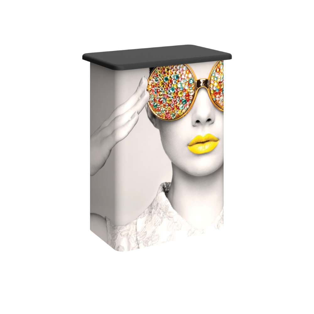Vector Frame™ Counter 04 complements the Vector Frame series of exhibit kits but is also ideal for any stand-alone event or display. Featuring a slim rectangular shape, Vector Frame Counter 04 is an easy-to-use, easy-to-transport counter that combines includes simple extrusion-based frames, an internal shelf, and your choice of push-fit fabric or rigid graphics. The tabletop is available in four color finish options.