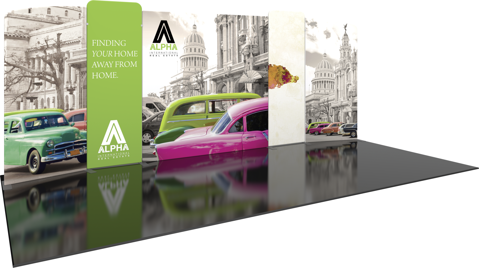 Modulate 20ft Kit 03 consists of five straight, magnetic fabric banners. Kit 03 can reconfigure into a 10ft display (MOD-10-05-M-TL) and can also be repurposed as individual banners. Versatile, simple, and smart displays help exhibitors maximize their exhibit value.