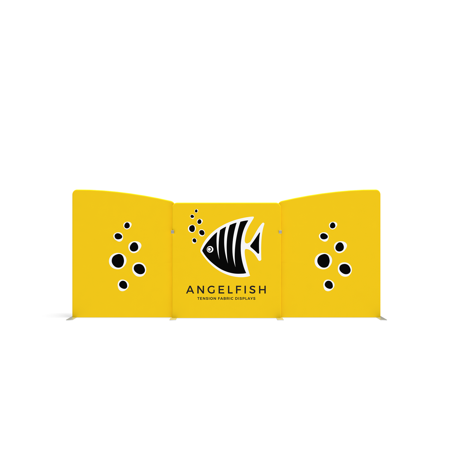 20ft WaveLine® Angelfish-C Media Single-sided Tension Fabric Display w/ Curved Header (Graphic Package)