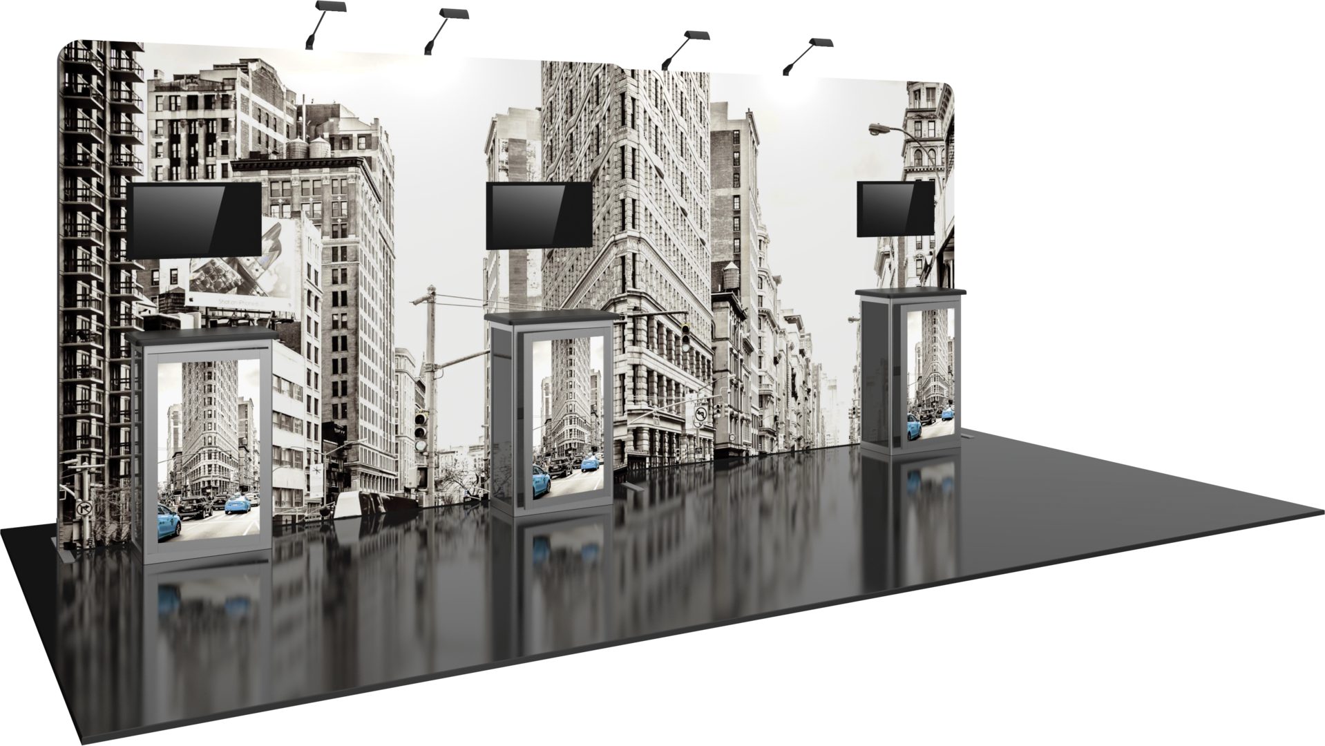 - Reconfigurable into 10'x10' inline display - additional components may be required