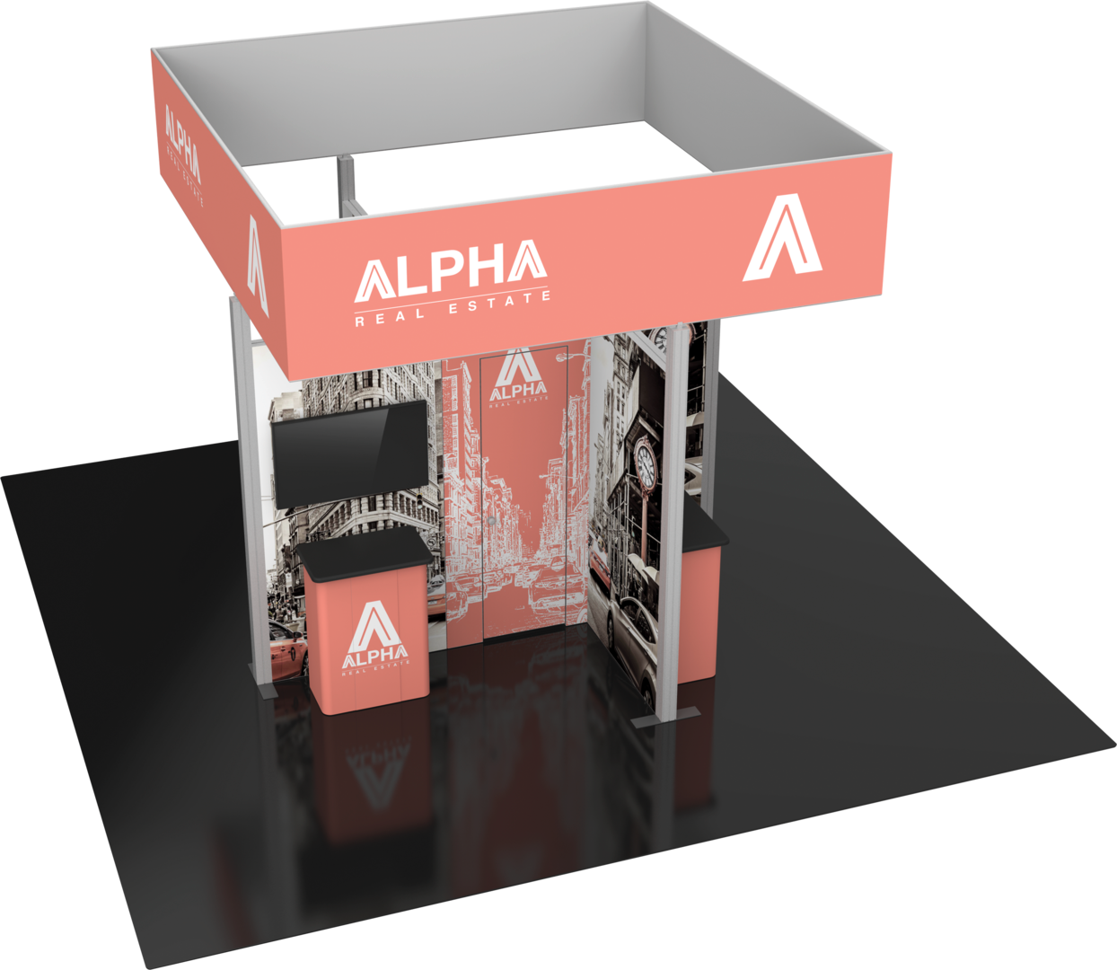 - Features 12'w x 3'h square fabric structure up high to draw visitors to the booth