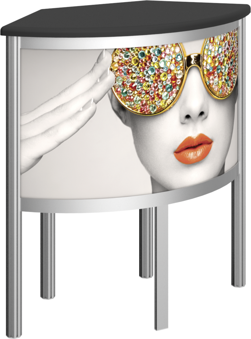Vector Frame™ Counter 06 complements the Vector Frame series of exhibit kits, and is also ideal for any stand-alone event or display. Vector Frame Counter 05 combines simple extrusion-based frames and rigid graphics. The back of the counter features a locking door with a blank infill and provides access to interior storage space. Tabletops available in four color finish options.