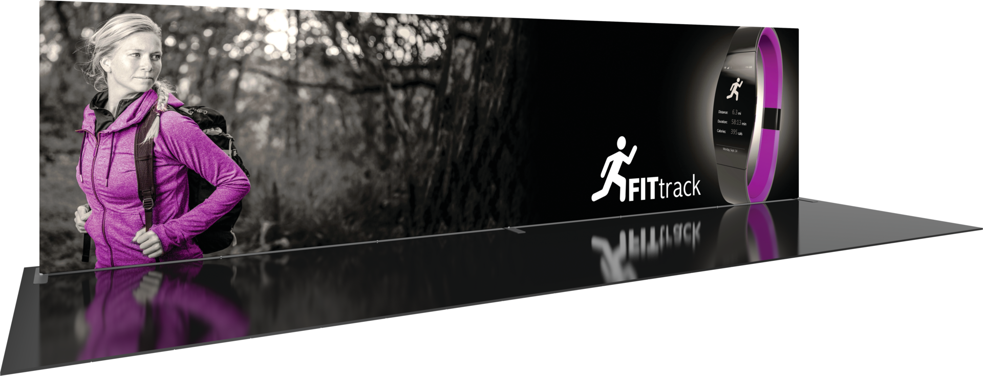 Formulate Designer Series 30ft Backwall Kit 01 is a simple straight 30' backwall that allows for a commanding and bold graphic and message. The kit includes an aluminum tube frame with a snap-button connection and one zipper pillowcase fabric graphic that simply stretches over the frame. Assembly is simple - connect the tubes, pull the graphics over the frame, and zip.