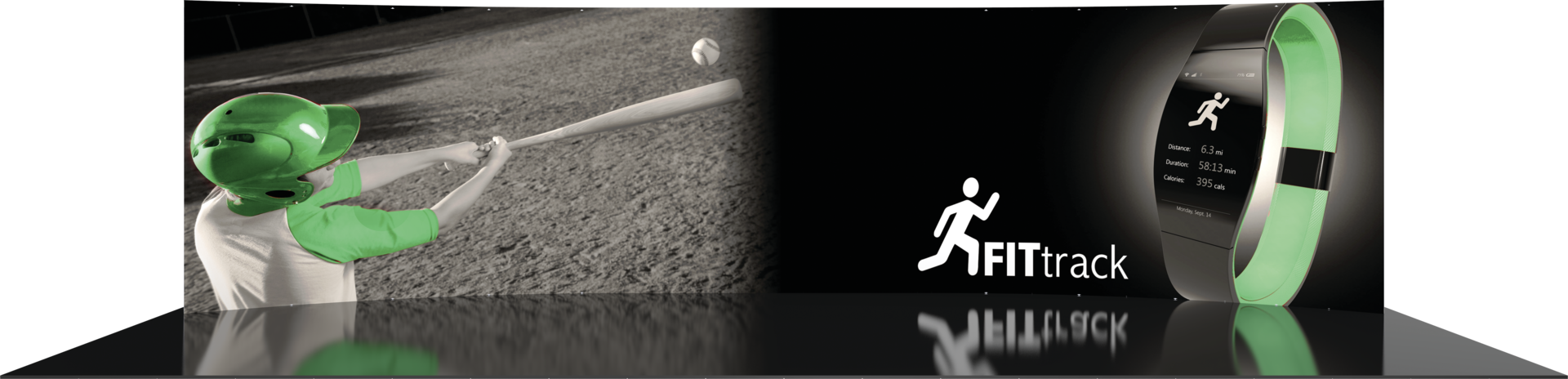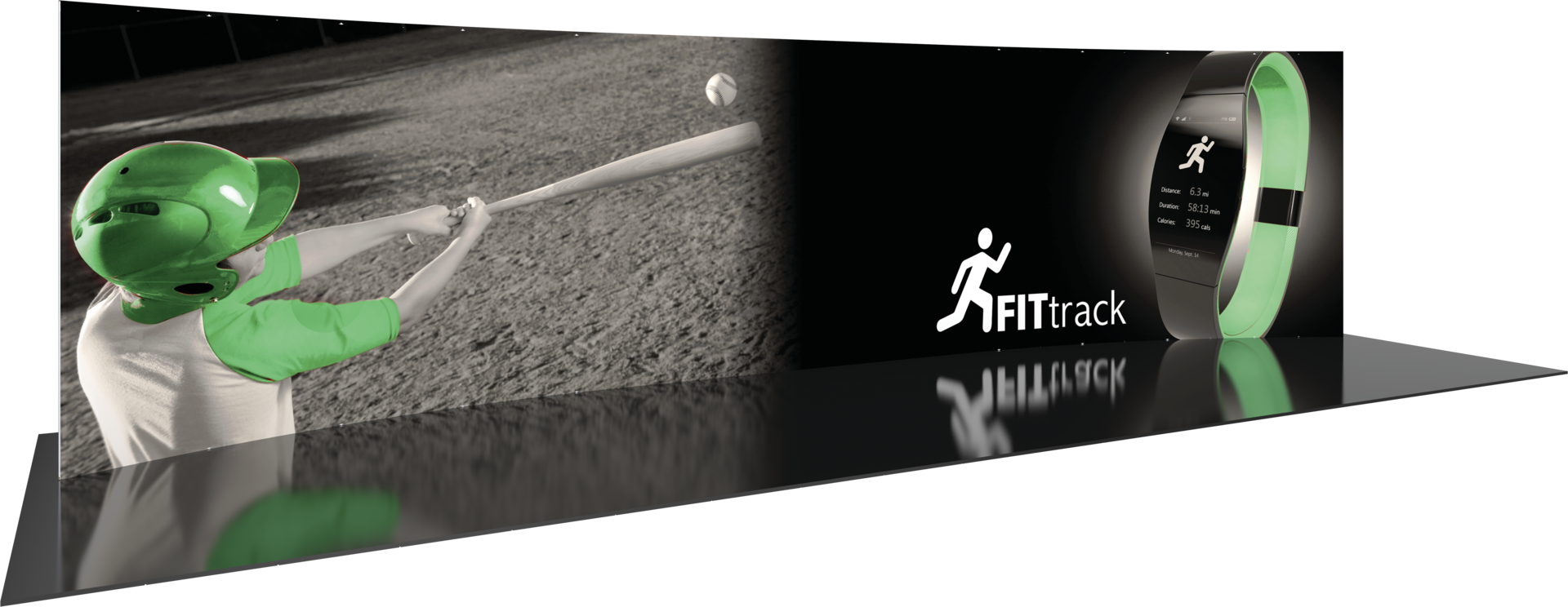 Formulate Designer Series 30ft Backwall Kit 03 featues a horizontal curve shape and commands a dominating presence with ample real estate for graphic messaging. The kit includes one aluminum tube frame with snap-buttons/spigot connections and one zipper pillowcase fabric graphic that simply stretches over the frame. Assembly is simple - connect the tubes, pull the graphics over the frame, and zip.