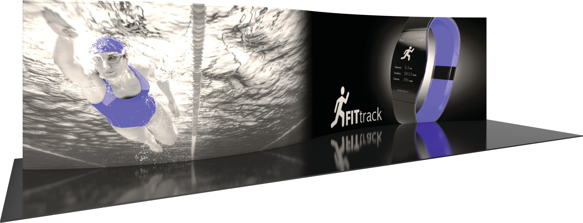 Formulate Designer Series 30ft Backwall Kit 06 is a serpentine-shaped display that creates a nice flow in any space. The aluminum tube frame features snap-buttons/spigot connections and one zipper pillowcase fabric graphics. Assembly is simple - connect the tubes, pull the graphics over the frames, and zip.