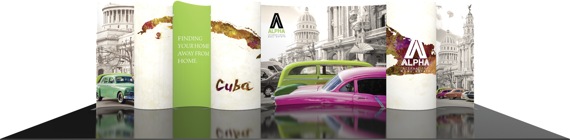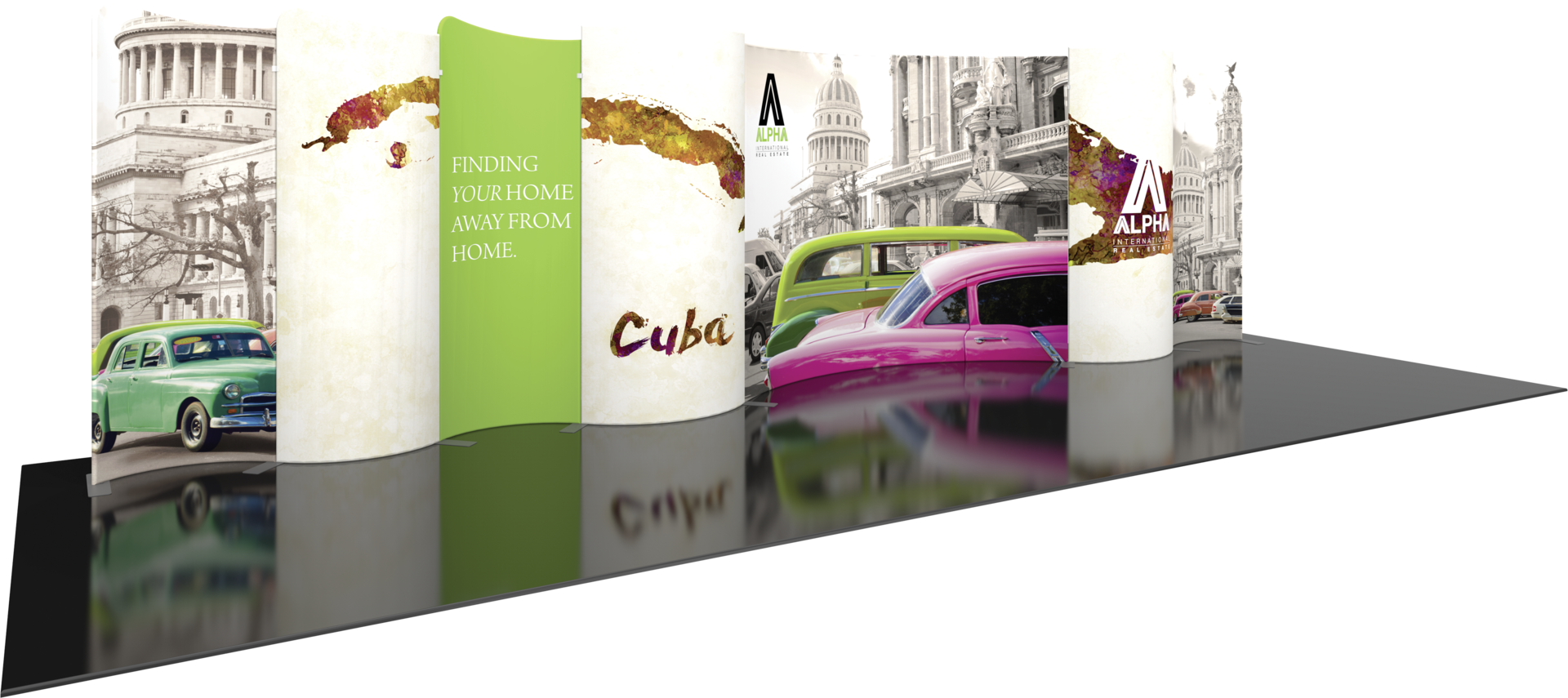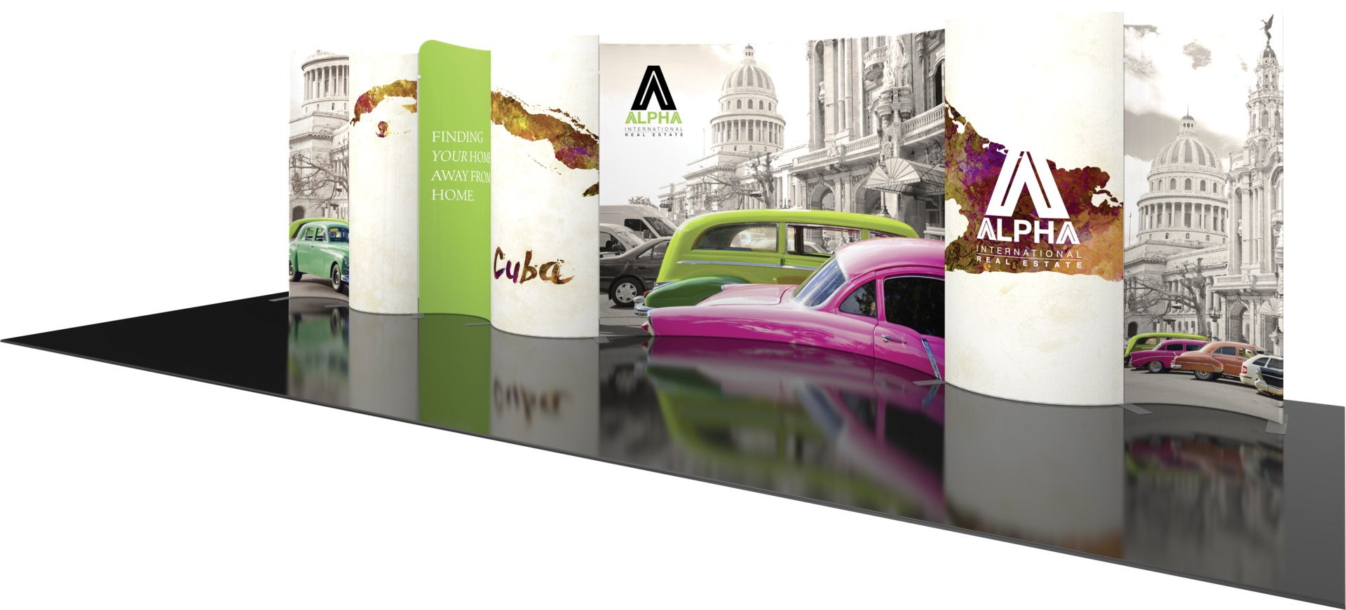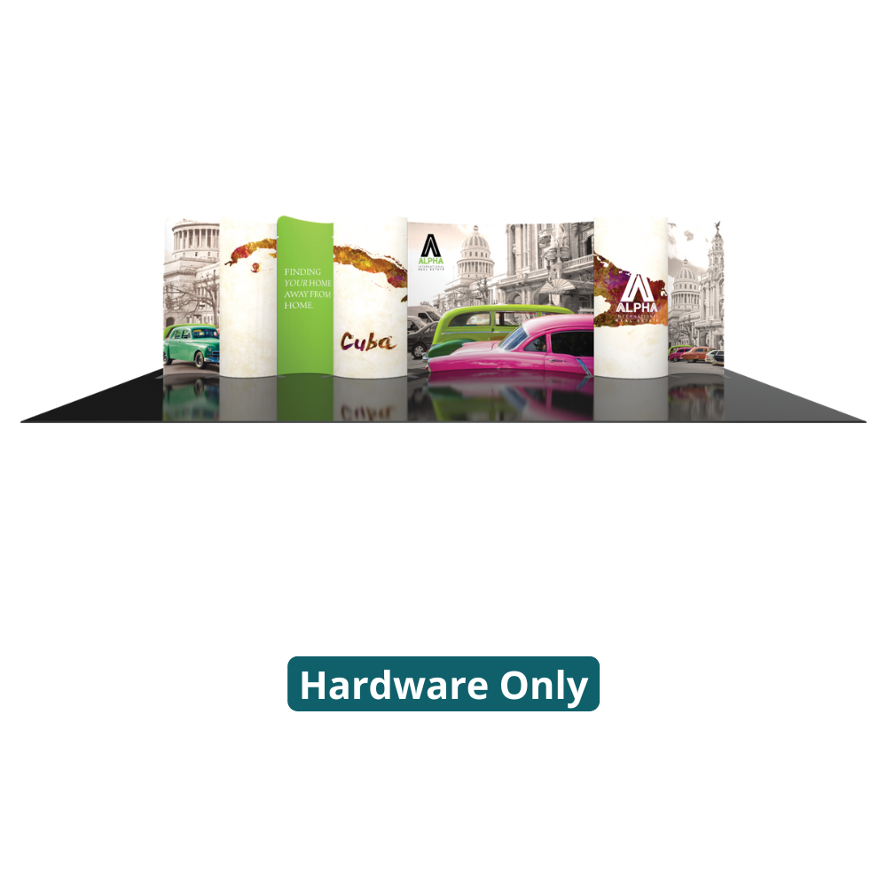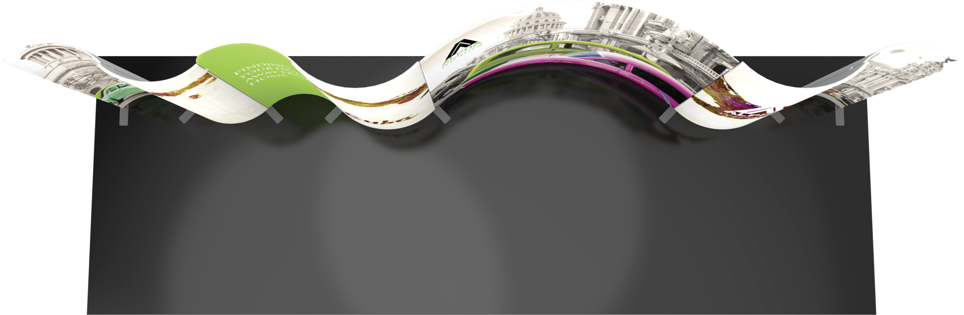 Modulate 30ft Kit 01 consists of seven curved, magnetic banners. Kit 01 reconfigures into a 20ft wide display, OR into two 10ft wide displays. Maximize your value in this versatile, reconfigurable system.