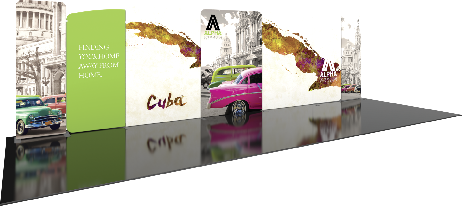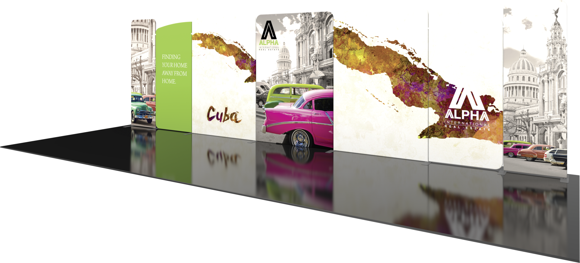 Modulate 30ft Kit 02 consists of seven straight, magnetic banners. Kit 02 reconfigures into a 20ft wide display, AND into two 10ft wide displays. Maximize your value in this versatile, reconfigurable system.