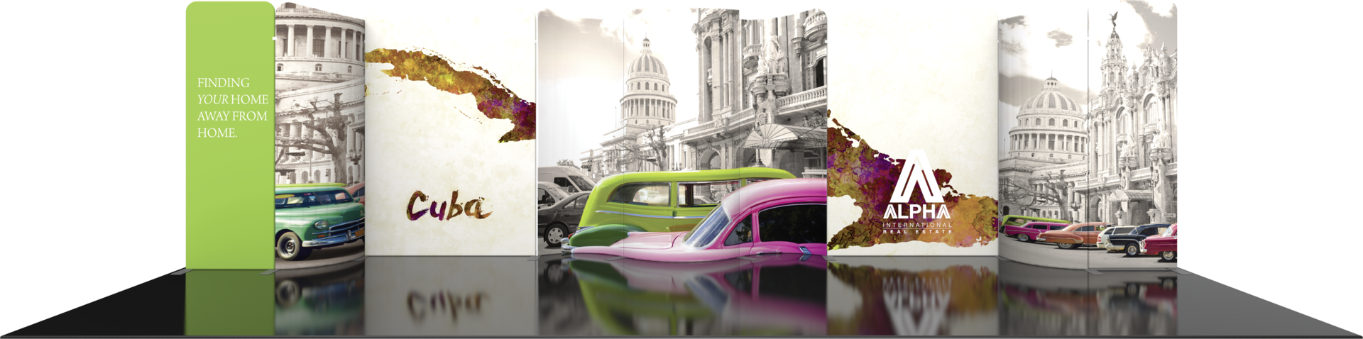 Modulate 30ft Kit 05 consists of four curved and five straight, magnetic banners. Kit 05 reconfigures into a 20ft wide display, OR into two 10ft wide displays. Maximize your value in this versatile, reconfigurable system.