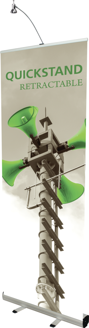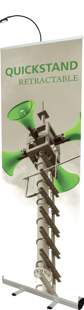 The Quickstand kit is a ready-made retractable banner display solution. The kit includes 1 Mosquito 800 banner stand, 1 OCB-2 banner stand case, and 1 Slimline LED banner stand light. Choose from anodized silver or black base options for a quick and easy display solution.
