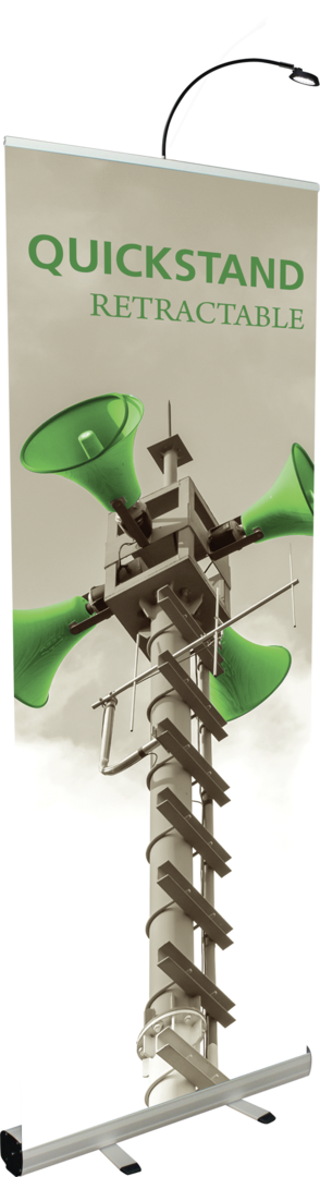 The Quickstand kit is a ready-made retractable banner display solution. The kit includes 1 Mosquito 800 banner stand, 1 OCB-2 banner stand case, and 1 Slimline LED banner stand light. Choose from anodized silver or black base options for a quick and easy display solution.
