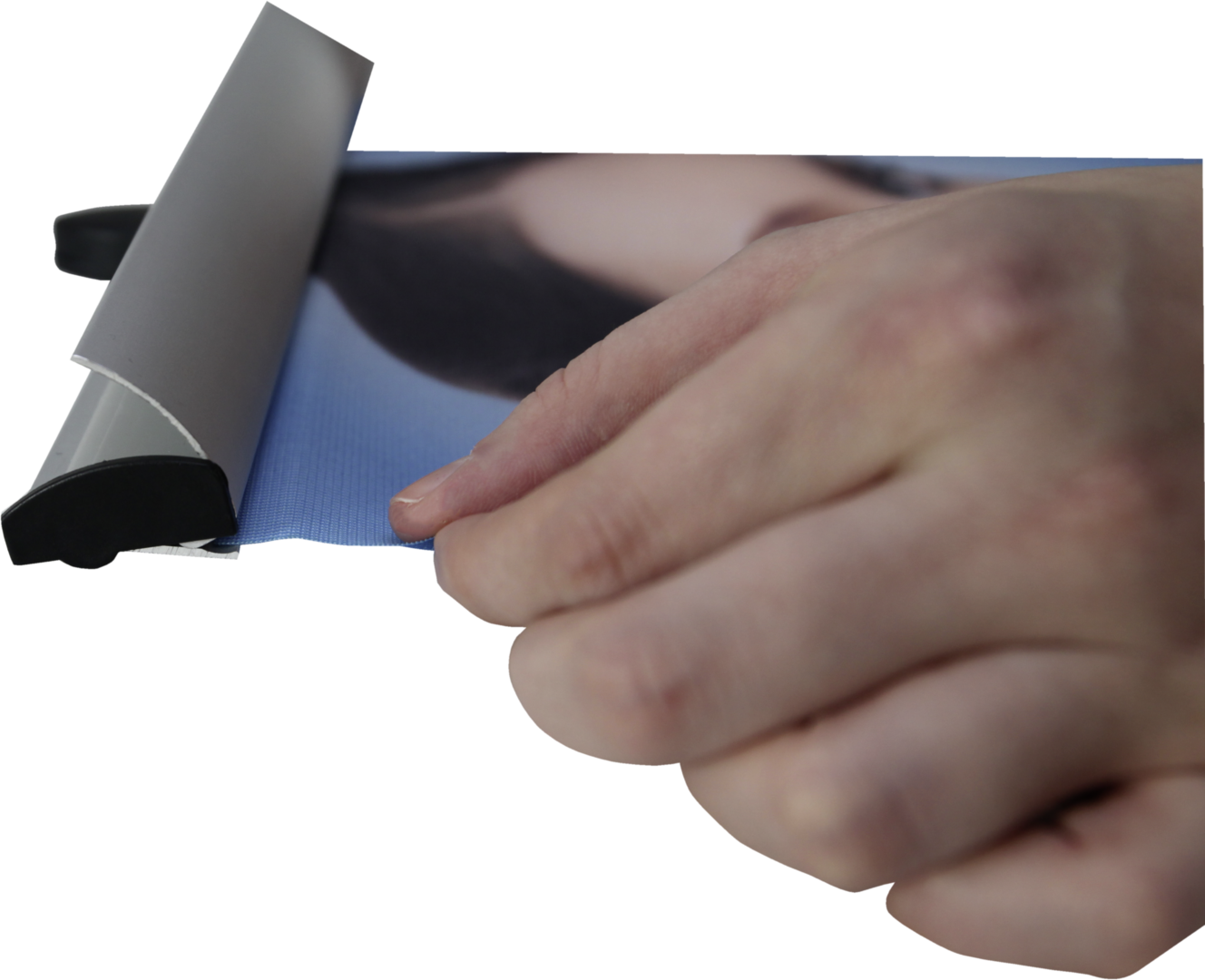 The Poster Snapper is a low-cost, high grip aluminum snap rail system with a clean, simple, elegant look. The adjustable hanging clips slide along the top rail to match the desired spacing. The clips feature both a top opening for a clear nylon line mount and a recessed pocket for S-hook suspension. The rails snap open and shut for quick graphic changes. Custom kits with lengths up to 60in are available.