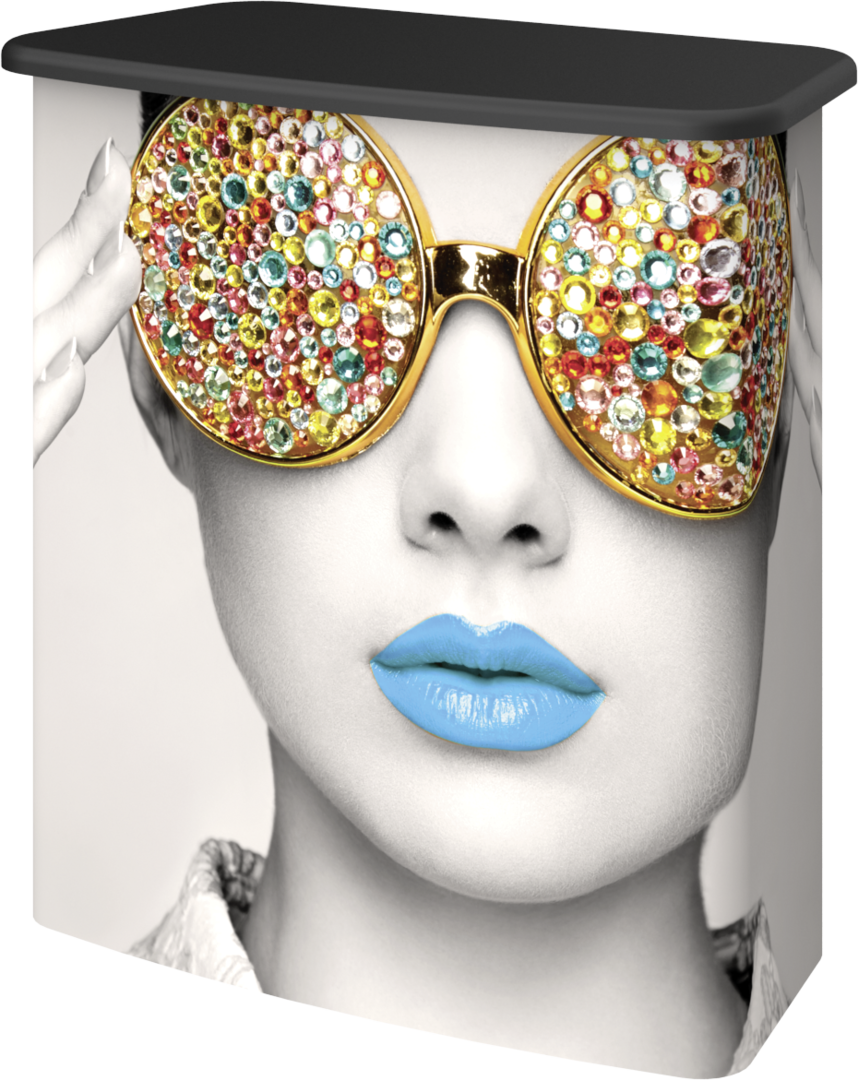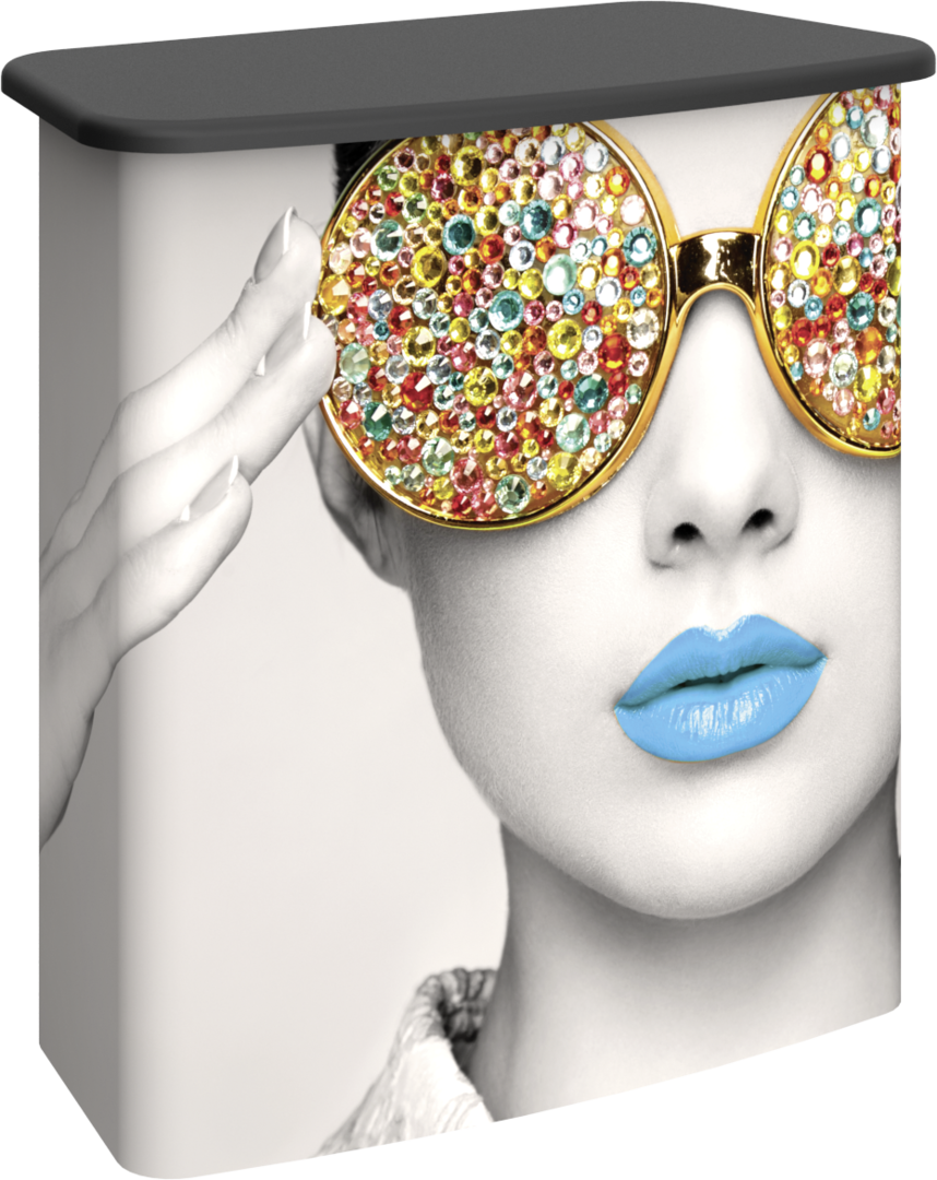 Vector Frame™ Counter 03 complements the Vector Frame series of exhibit kits but is also ideal for any stand-alone event or display. Featuring a rectangular shape and tabletop available in four color finish options, Vector Frame Counter 03 includes simple extrusion-based frames, an internal shelf, and your choice of push-fit fabric or rigid graphics.