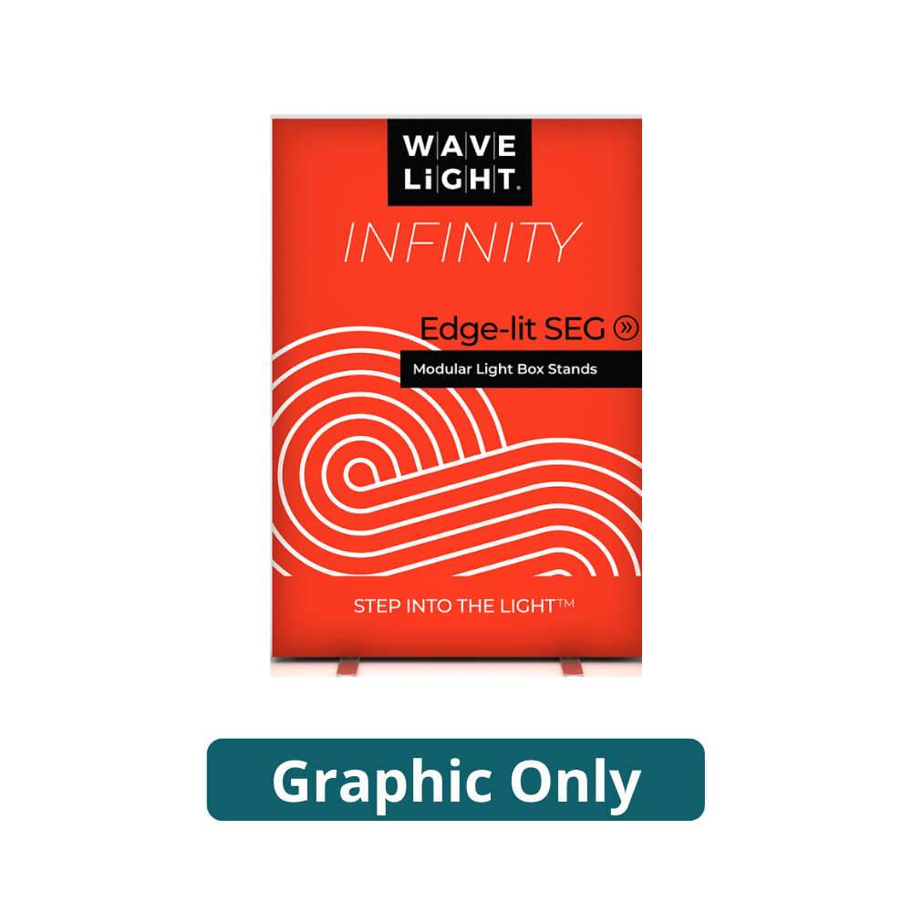 The WaveLight ® Infinity is the first-ever continuous Edge-lit SEG Modular Light Box Stand. Using a new patent-pending Edge-lit SEG €“ when connected together in a modular fashion, the Infinity light display's graphic seemingly disappears to the eye to create one continuous Infinity image and a completely immersive graphic experience. The new WaveLight ® Infinity is a reliable LED lightbox frame that can be used as a stand-alone display, connected together or wall-mounted.