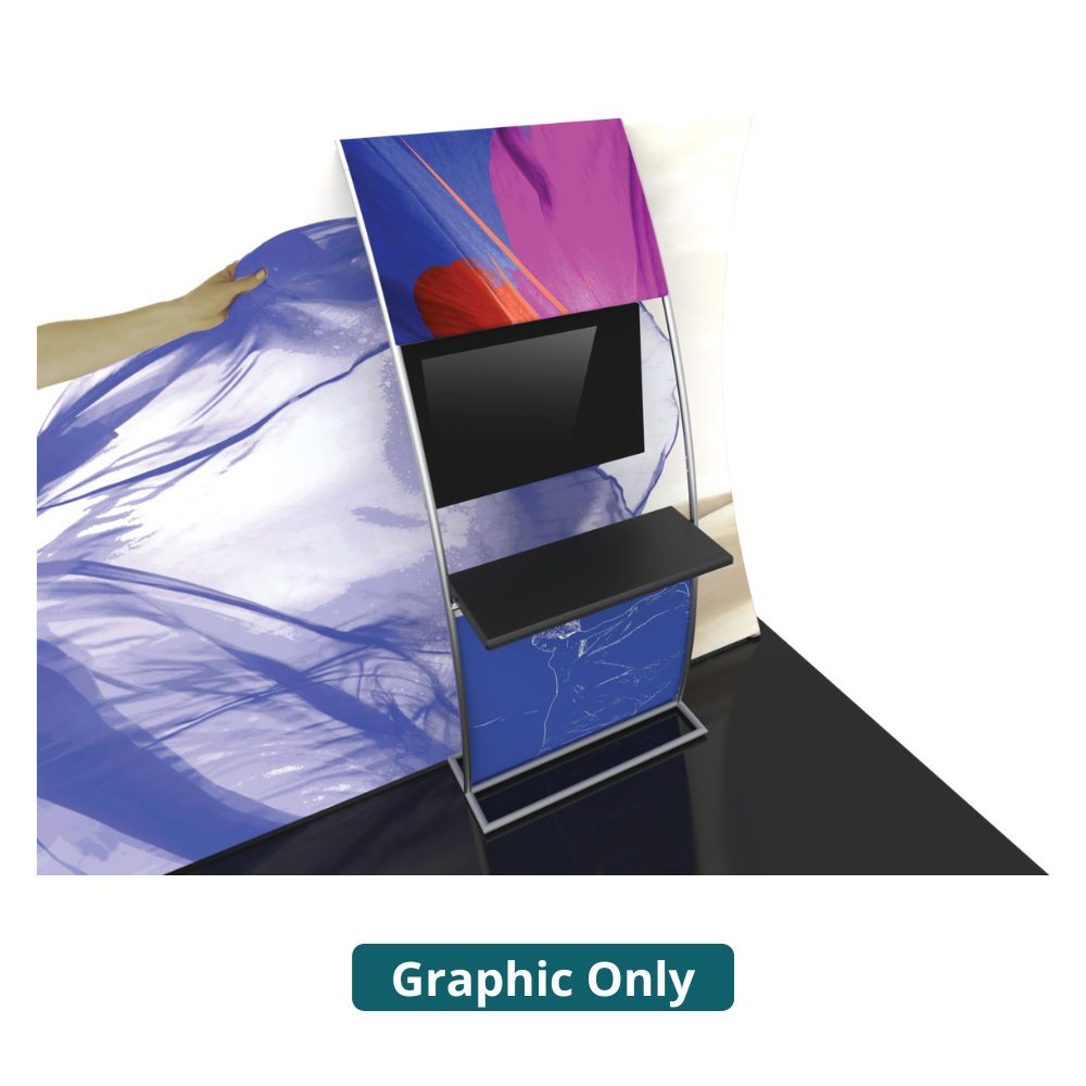 Formulate Backwall Accent 04 features printed fabric graphics (top and bottom), a counter top and a medium monitor mount supportive of a monitor for multimedia presentations. Backwall Accent 04 enhances the functionality of any Formulate Master 10ft or 20ft backwall and adds more real estate for messaging too!