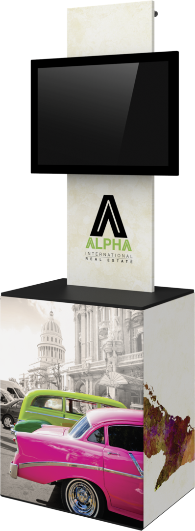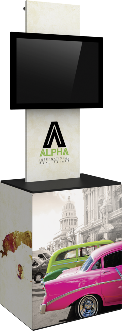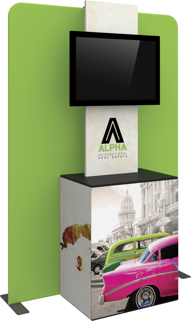 The Modulate™ Ladder Accent 02 is the perfect functional accent for Modulate Banners 09, 10, 13 and 14. The Modulate Ladder 02 helps you display videos and promotional content at events, in tradeshows and in all types of interior spaces. Printed fabric graphics provide branding, messaging and advertising opportunities. Magnetic counter provides interior shelf and functional storage space. Frame that holds monitor mount assembles using simple, snap-buttons and connects to the Modulate banner 09, 10, 13 and 14 using adjustable clamps. Modulate Banners sold separately.