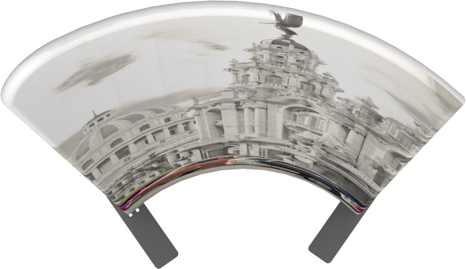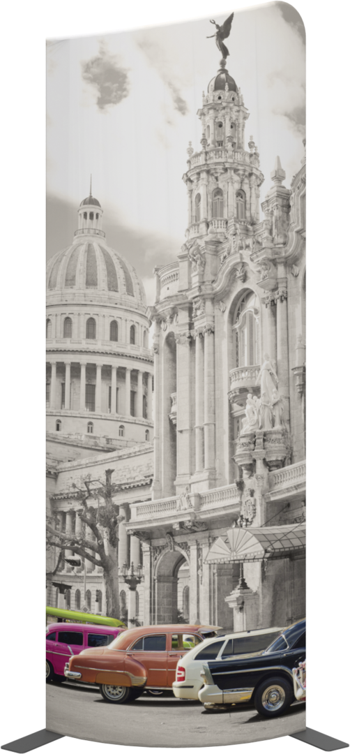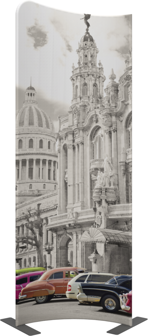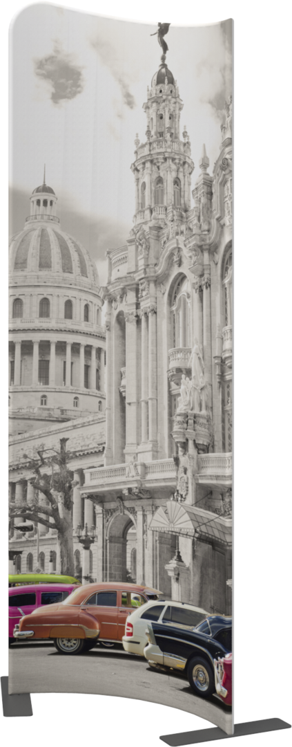 Modulate Fabric Banner 03 has two different corner shapes (right or left position is your choice) and can be displayed in a concave or convex format.