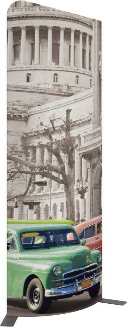 Modulate Fabric Banner 04 has two different corner shapes (right or left position is your choice) and can be displayed in a concave or convex format.