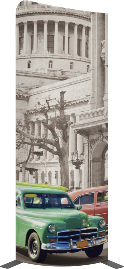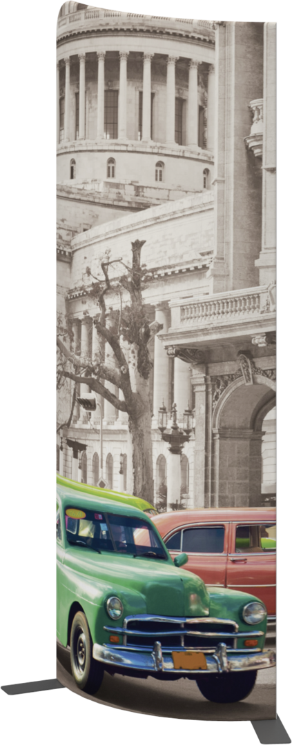 Modulate Fabric Banner 04 has two different corner shapes (right or left position is your choice) and can be displayed in a concave or convex format.