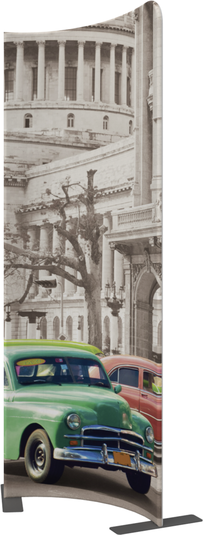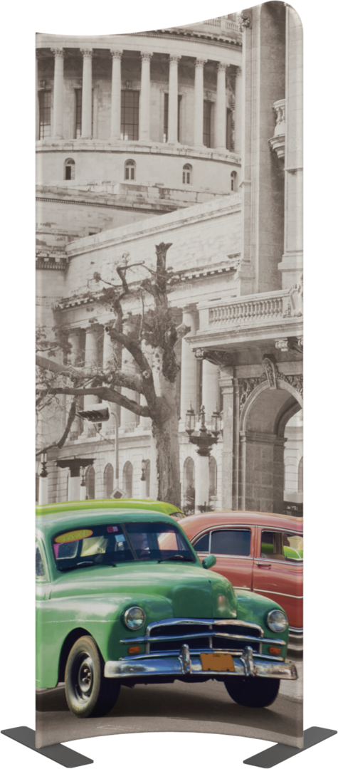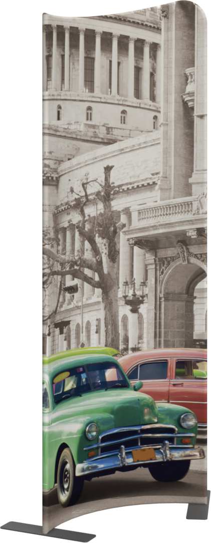 Modulate Fabric Banner 04 has two different corner shapes (right or left position is your choice) and can be displayed in a concave or convex format.