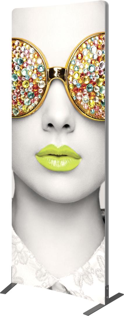 Vector Frame™ curved fabric banner 01 is a modern, extrusion-based fabric graphic banner display measuring 39.33"W x 94.74"H that combines 50mm aluminum extrusion frames with push-fit fabric graphics. Vector Frame Curved fabric banner 01 is a versatile single or double-sided banner, back wall, or interior display. Use as a concave or convex shape for increased versatility.