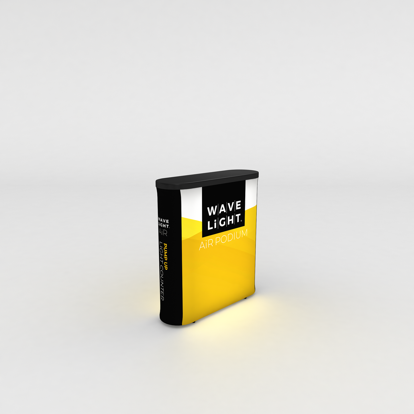 The WaveLight ® Air Podium is a double-sided inflatable display with bright LED €™s that flood the fabric graphic creating an eye-catching focal point for branding your business. It has a quick and easy set up - go from flat packed to fully inflated in under 60 seconds.