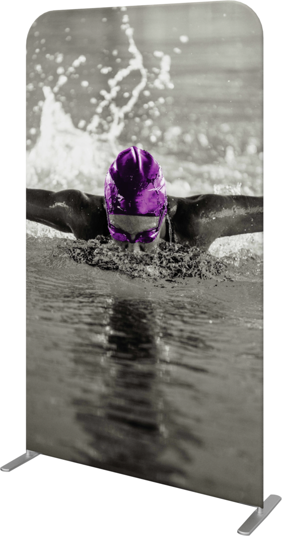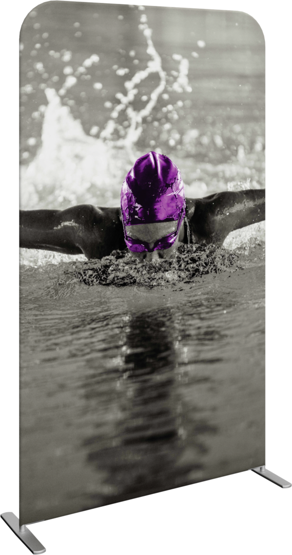 The Formulate Essential Banner 1200 - Straight measures 47.25"W, 92"H and features a simple straight bungee-corded tube frame and a fabric graphic that simply slips over the frame. Perfect for any environment - from retail to trade show!