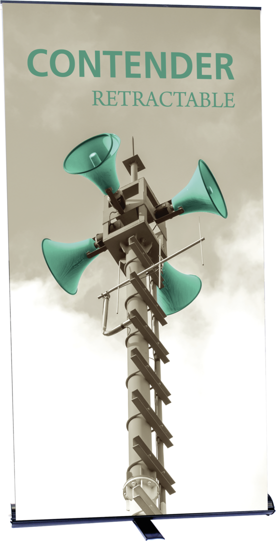 The Contender Monster retractable banner stand is exactly that; a monster of a display banner that's sure to make an impact in any environment. Measuring 48.5" in width with a height range of 77.5"-105", this ultra-durable display is a great all-purpose solution. The banner stand comes with a carry bag for added portability and protection.