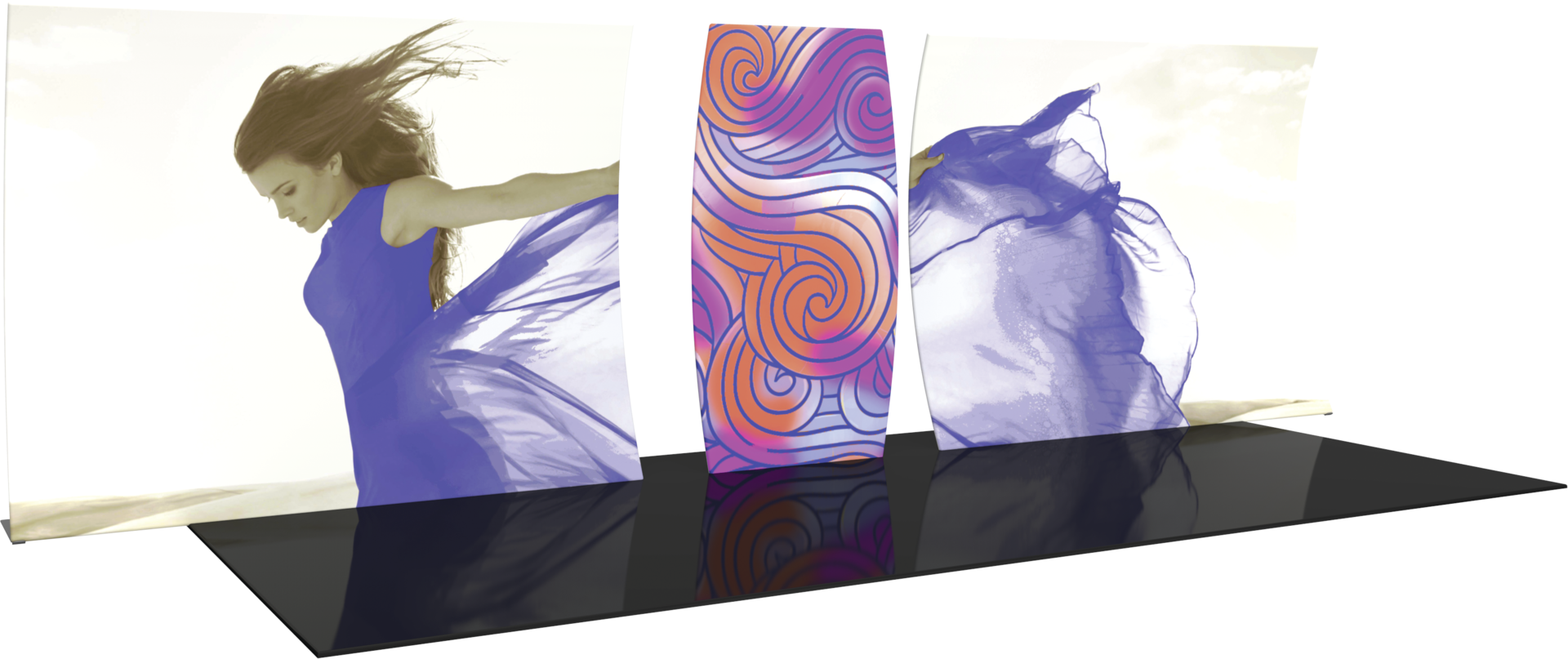 Formulate Backwall Connector 01 is an ideal accessory to connect two 10ft or 20ft Formulate Master backwalls (excluding VC6). It features a curved tubular frame, and pillowcase fabric graphic and connects easily to create the appearance of one seamless display and more real estate for messaging.