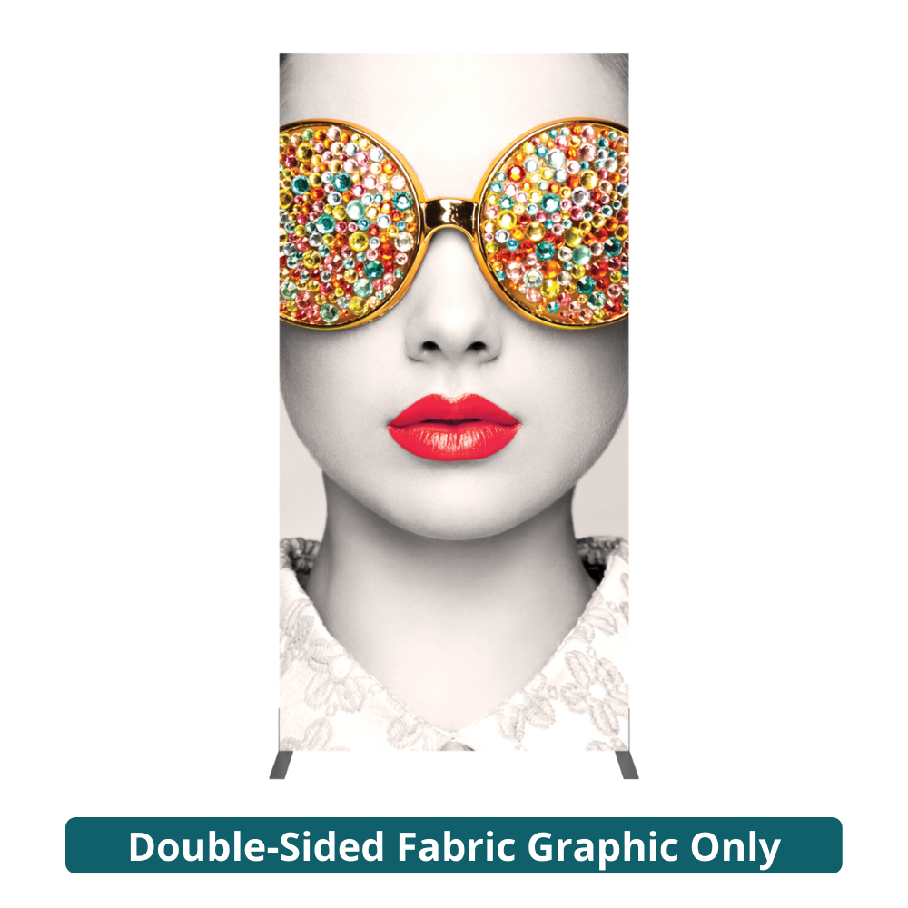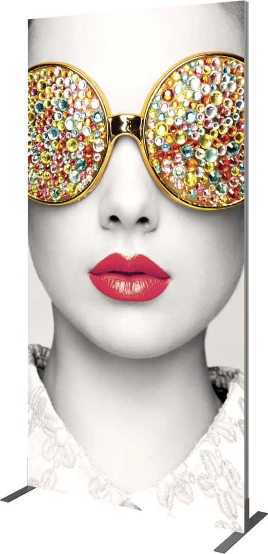 Vector Frame™ fabric banner R04 is a modern, extrusion-based fabric graphic banner display measuring 48.11"W x 94.74"H. The 2" aluminum extrusion frames are easy to assemble and disassemble and come with the choice of single-sided or double-sided push-fit SEG fabric graphic murals. Vector Frame banner R04 can be used to display messaging or art in a retail, corporate, event or trade show environment and more.