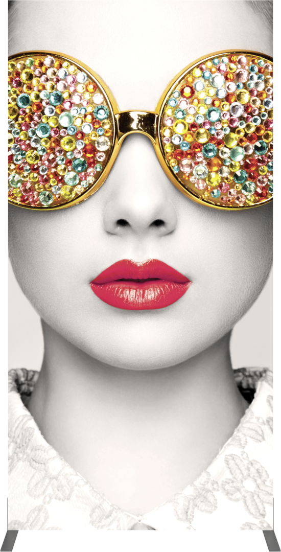 Vector Frame™ fabric banner R04 is a modern, extrusion-based fabric graphic banner display measuring 48.11"W x 94.74"H. The 2" aluminum extrusion frames are easy to assemble and disassemble and come with the choice of single-sided or double-sided push-fit SEG fabric graphic murals. Vector Frame banner R04 can be used to display messaging or art in a retail, corporate, event or trade show environment and more.