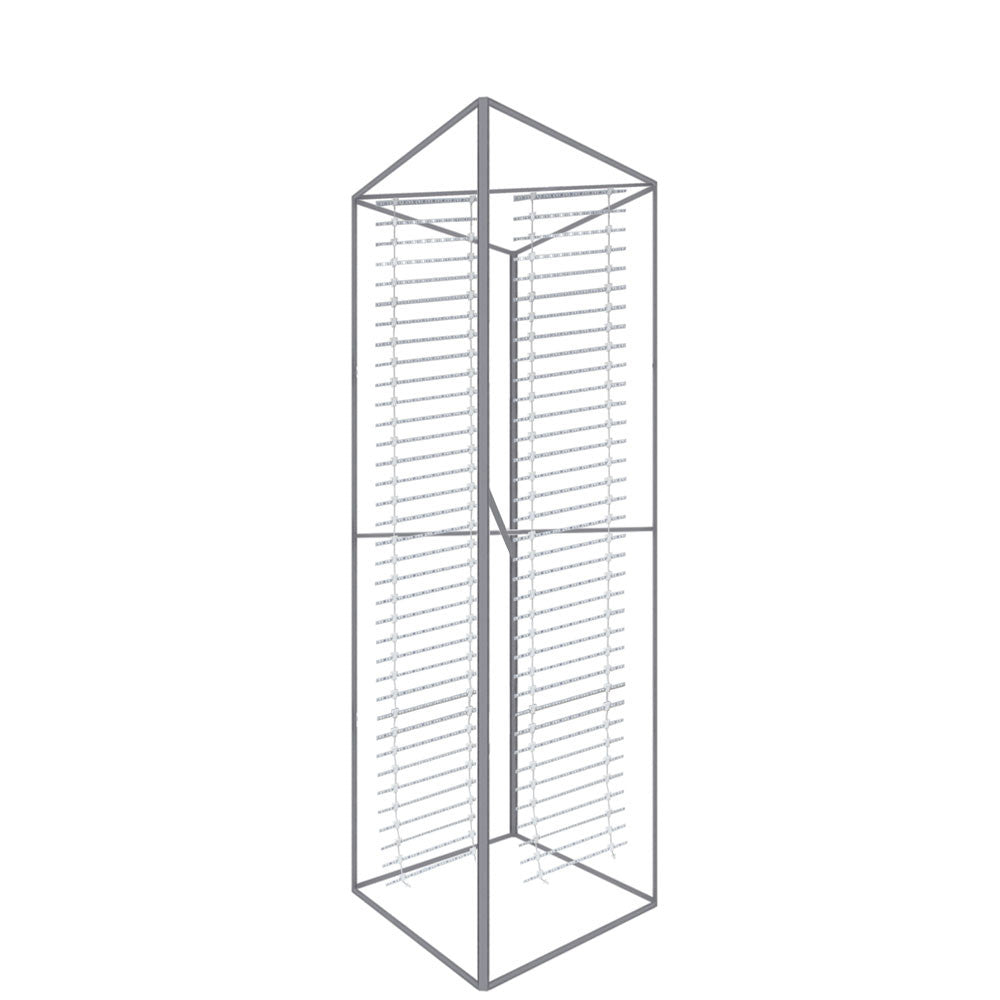 Big Sky Tower is part of the Resort Extrusion family of aluminum frames for Silicone-Edge Graphics (SEG). Custom-made on the premises, Big Sky Tower comes in varied sizes. Big Sky Tower accepts four individual custom fabric graphics, excluding the top and bottom. Insert graphics after the frame is constructed by tilting it on its side. Transversely, push the corners of the graphic into the frame's recessed groove. Then, starting midway on the frame going toward the corners, continue pushing in the straight edges of the graphic. Repeat three times.