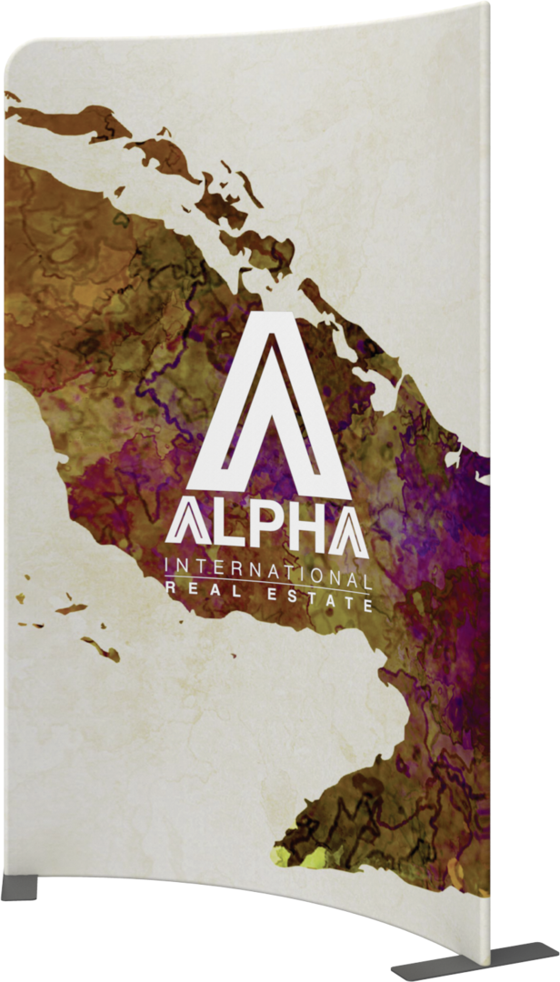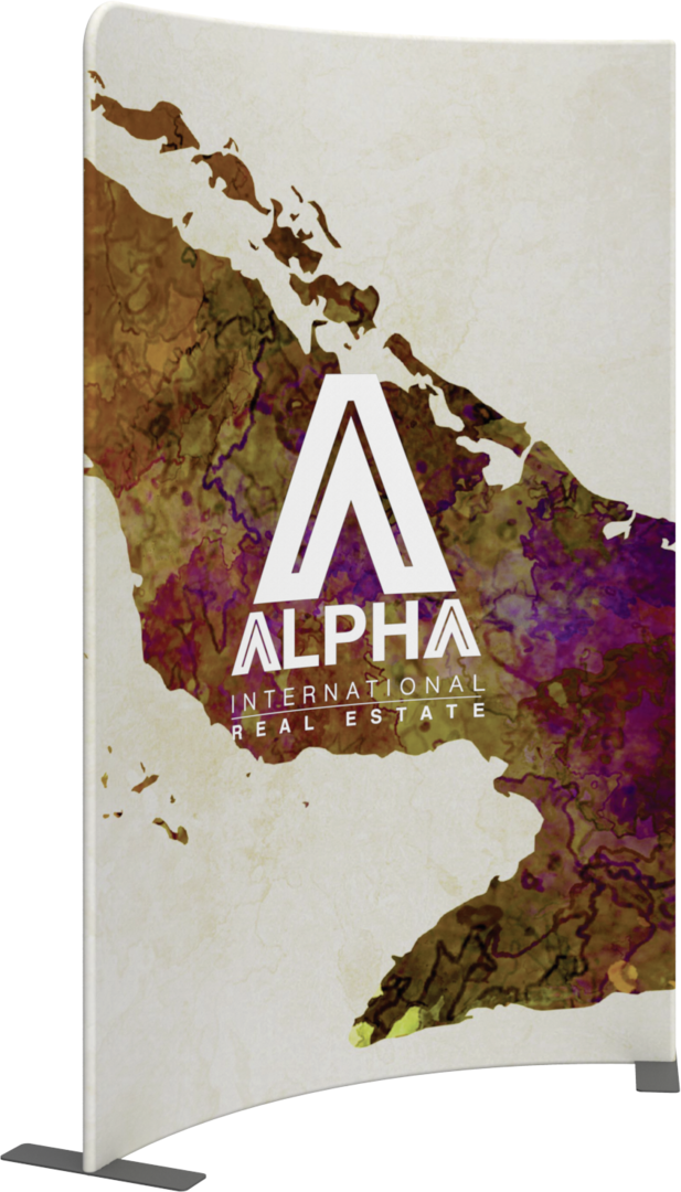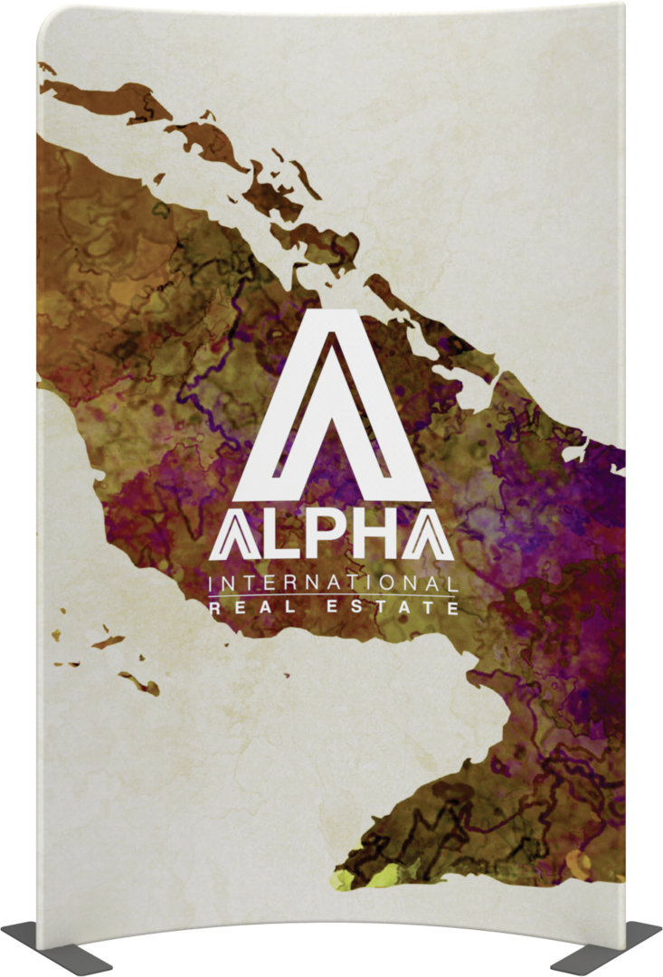 Modulate Fabric Banner 01 has two different corner shapes (right or left position is your choice) and can be displayed in a concave or convex format.