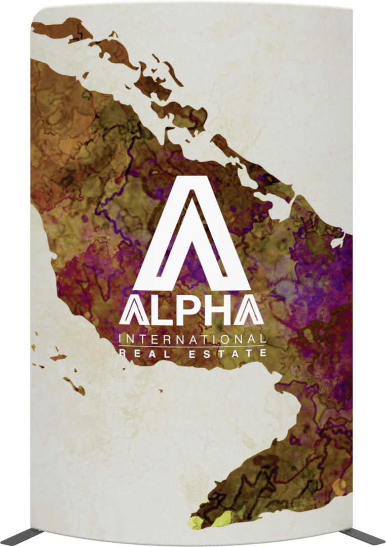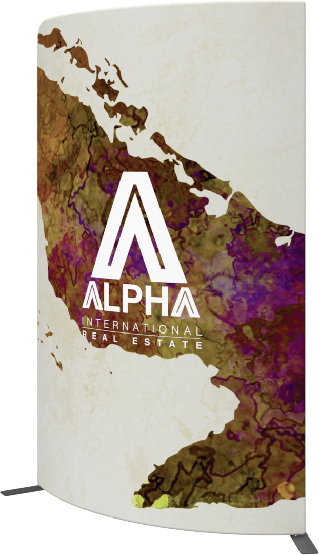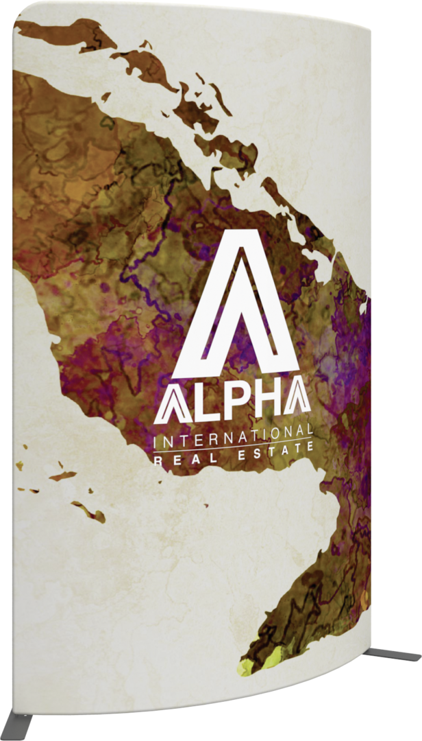 Modulate Fabric Banner 01 has two different corner shapes (right or left position is your choice) and can be displayed in a concave or convex format.